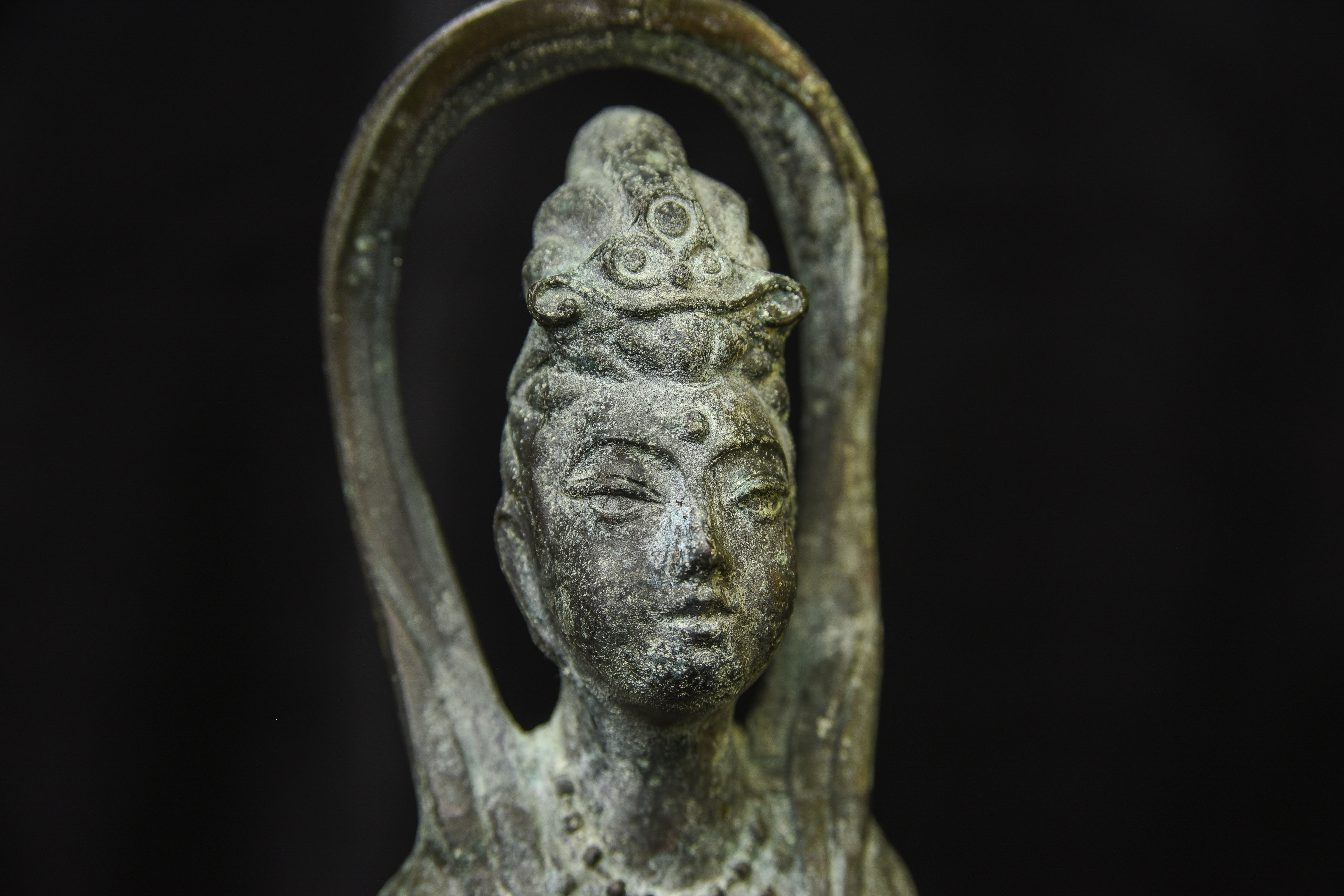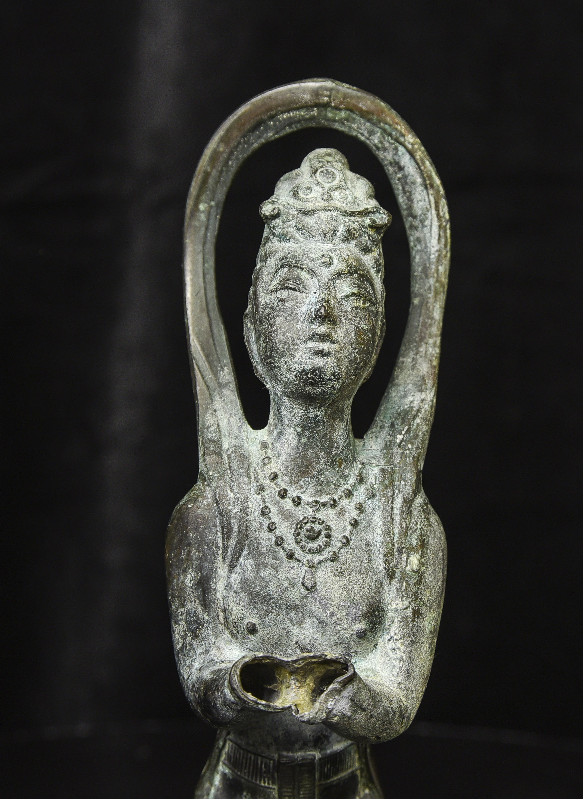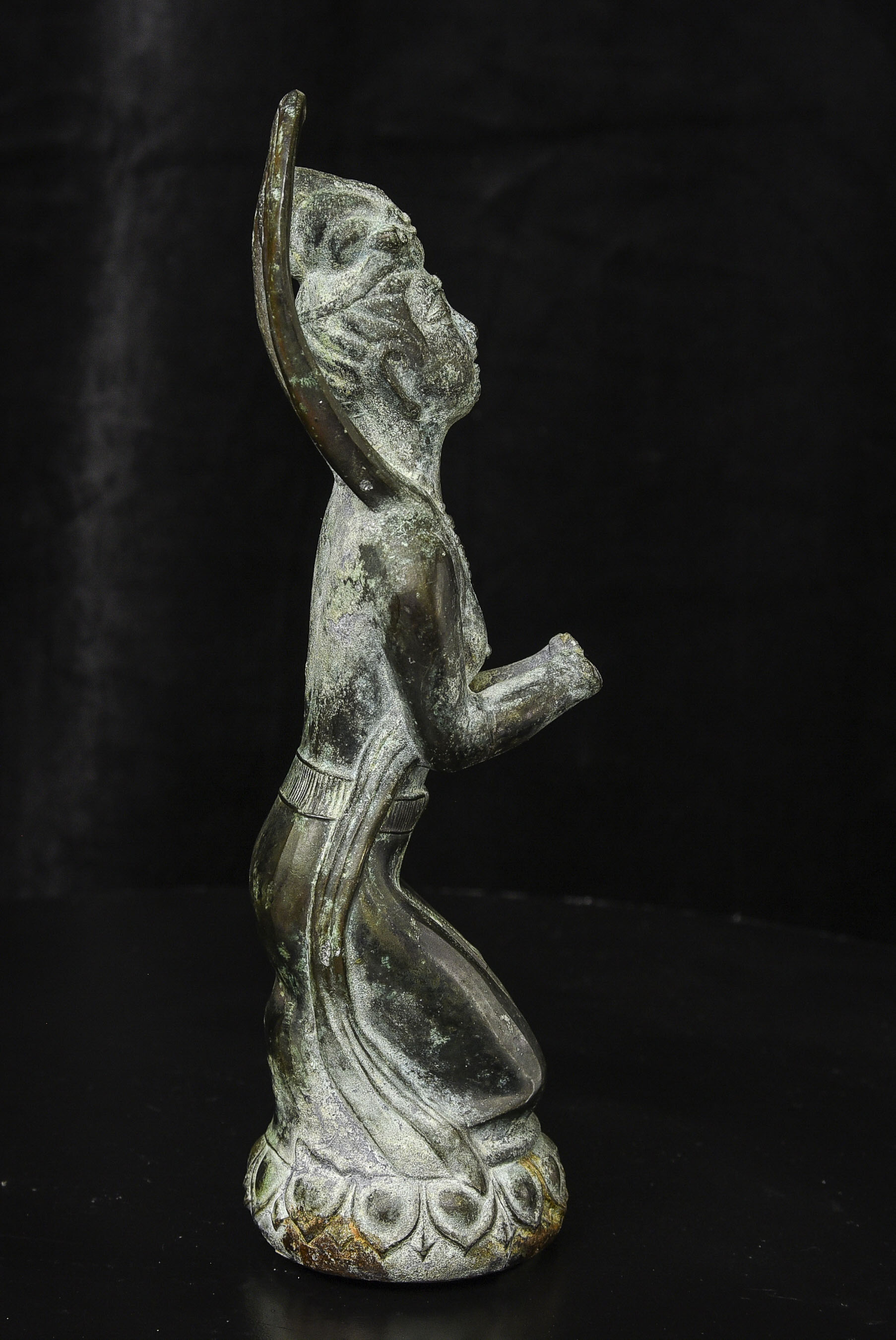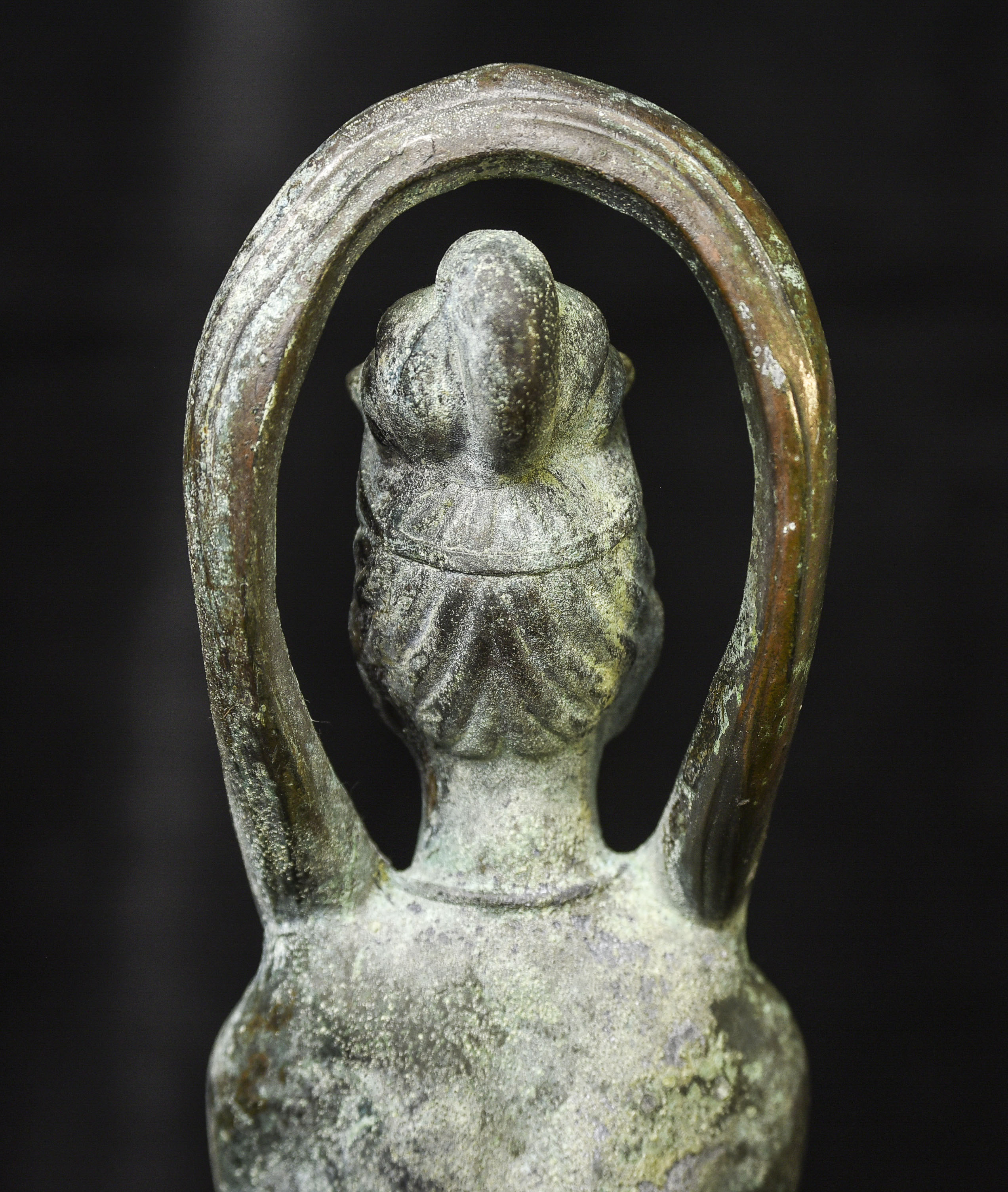 Mystery piece- cast in a lead alloy. Remains of lacquer. Probably Chinese. 8.75"H x 2.5"W