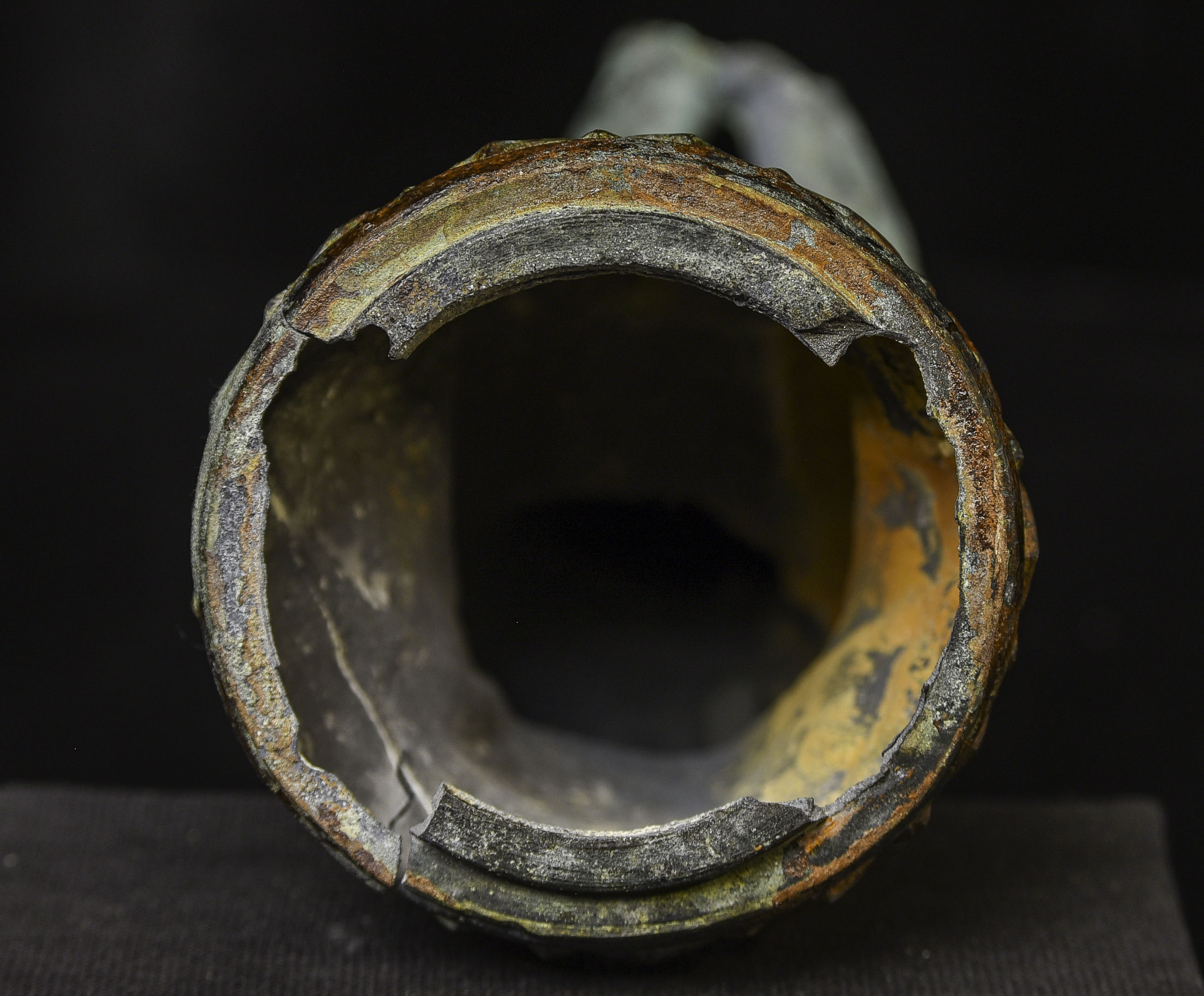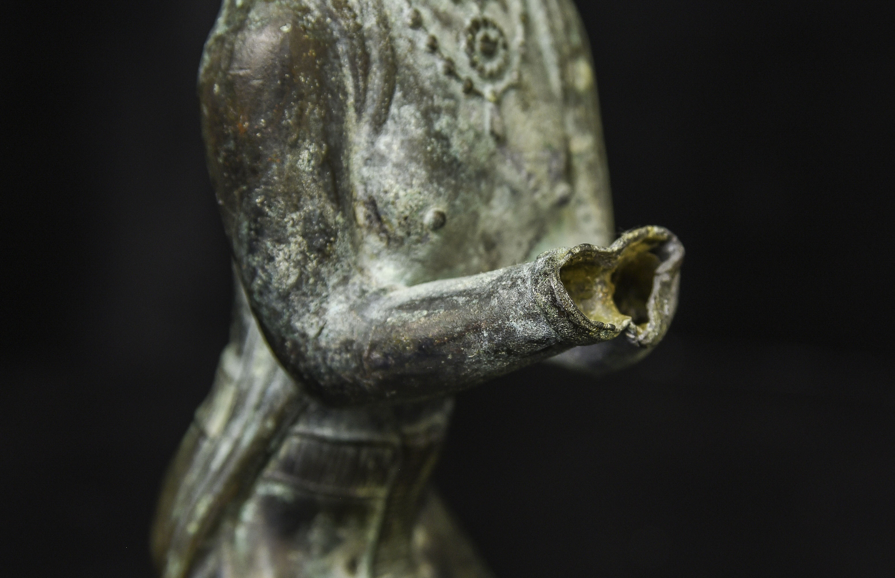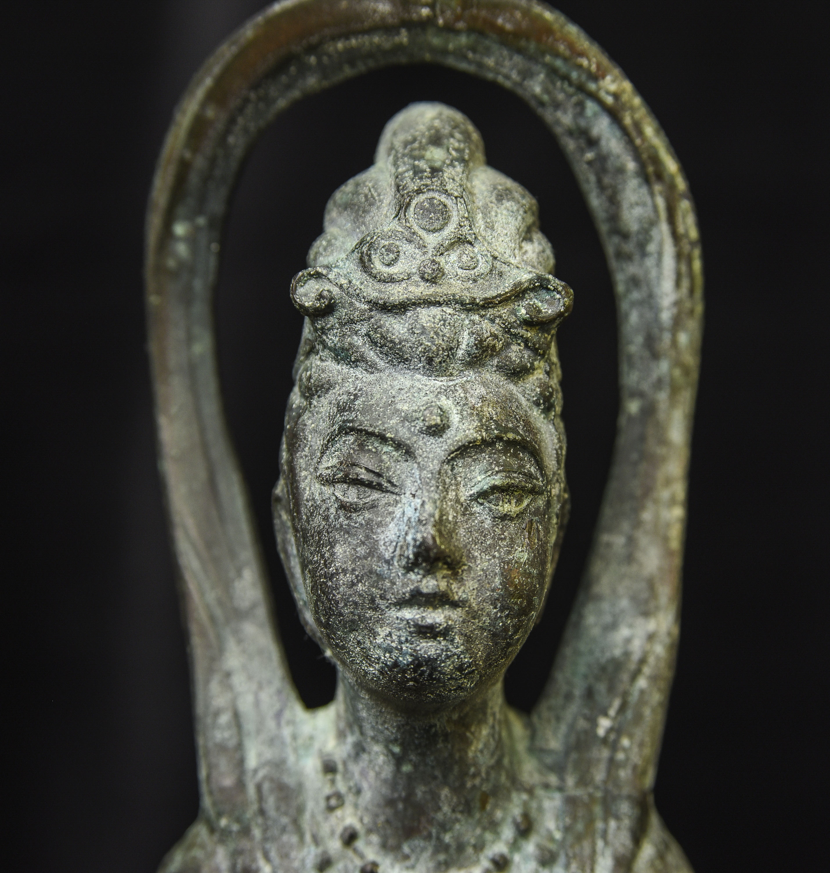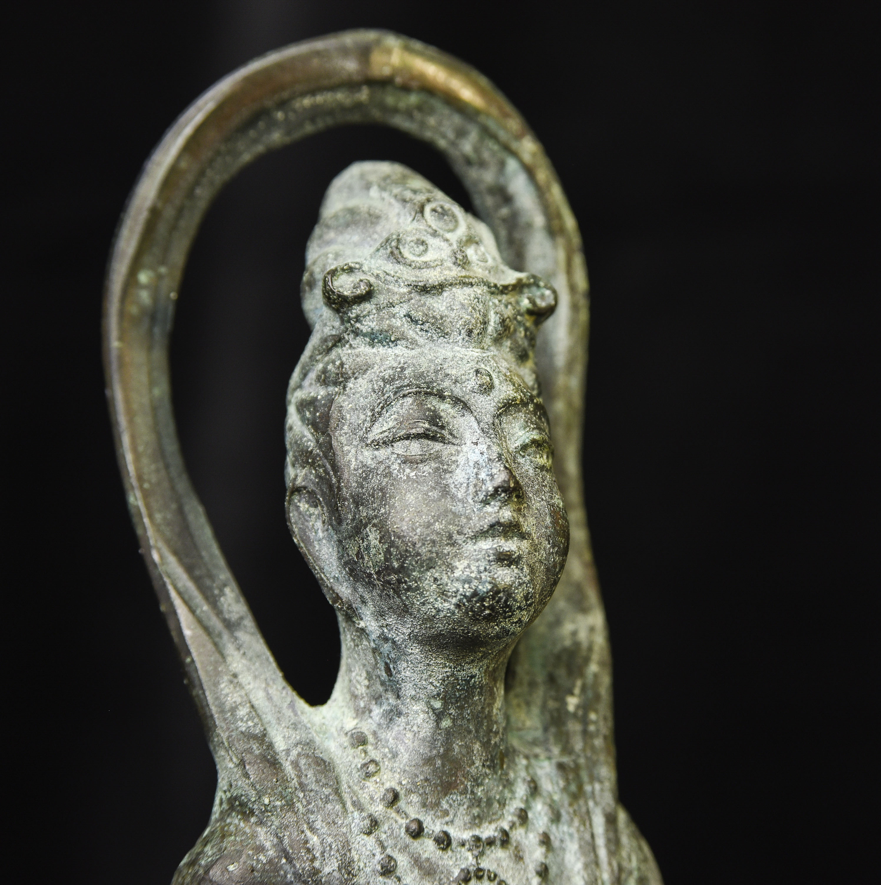 Mystery piece- cast in a lead alloy. Remains of lacquer. Probably Chinese. 8.75"H x 2.5"W