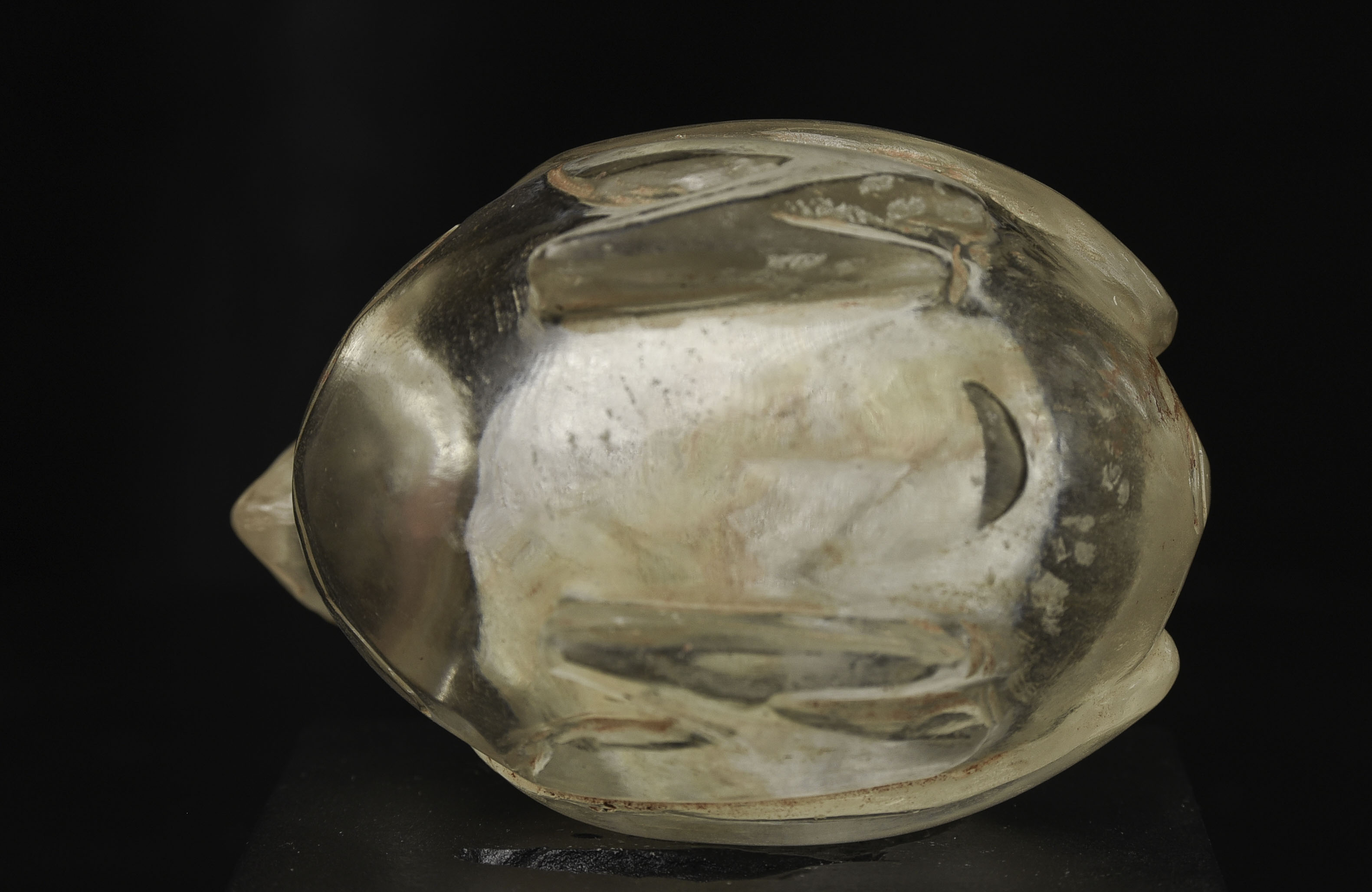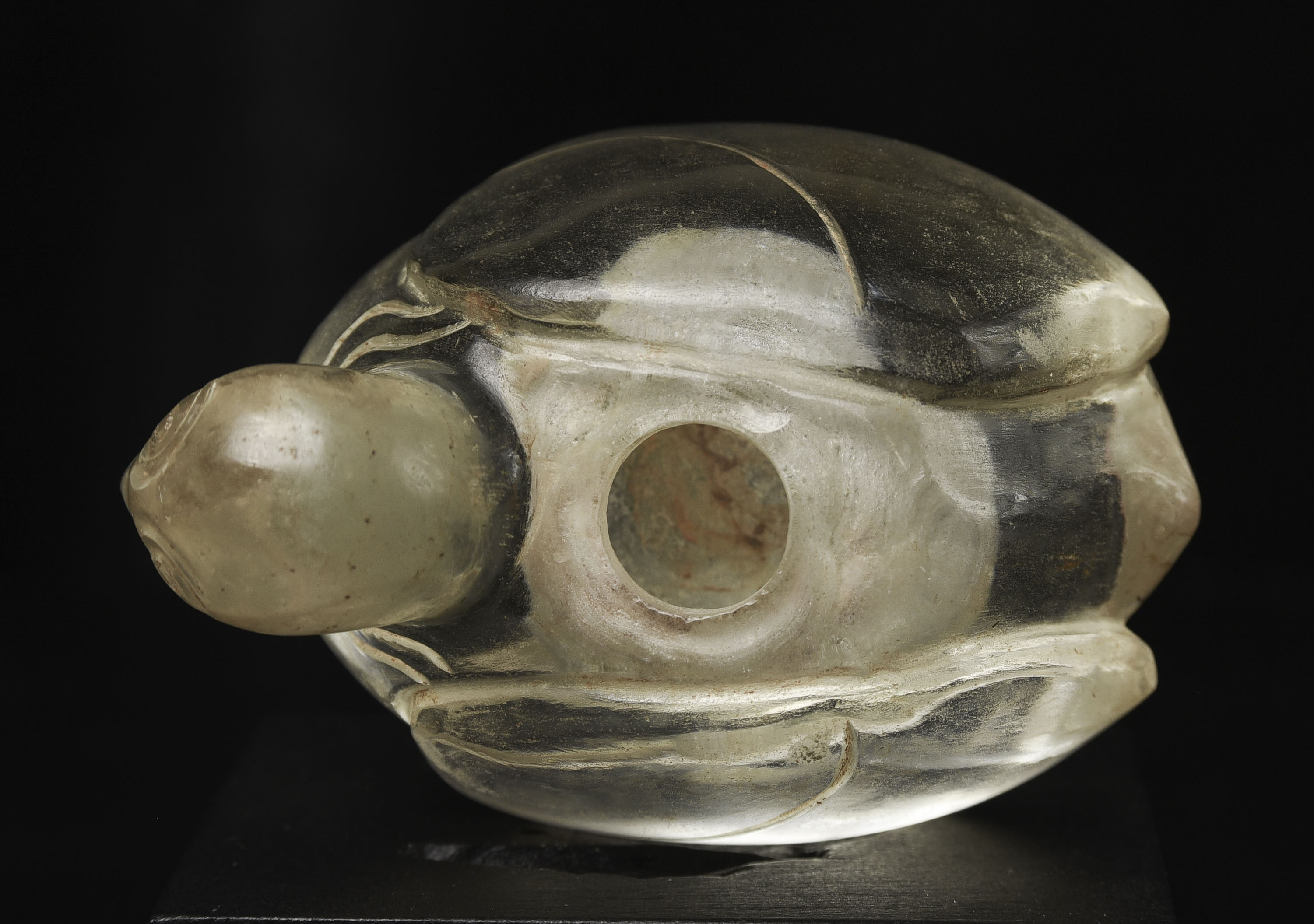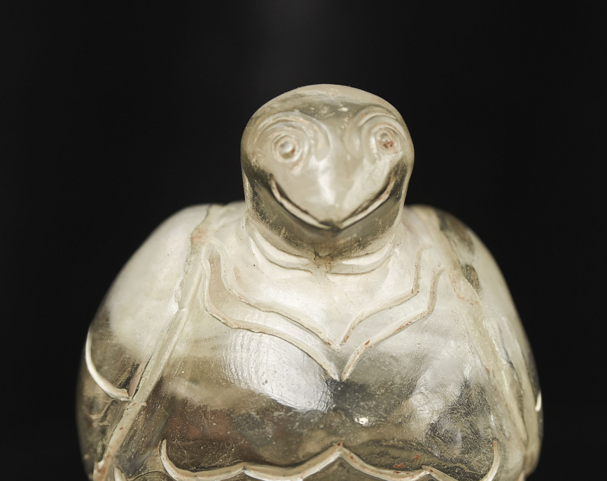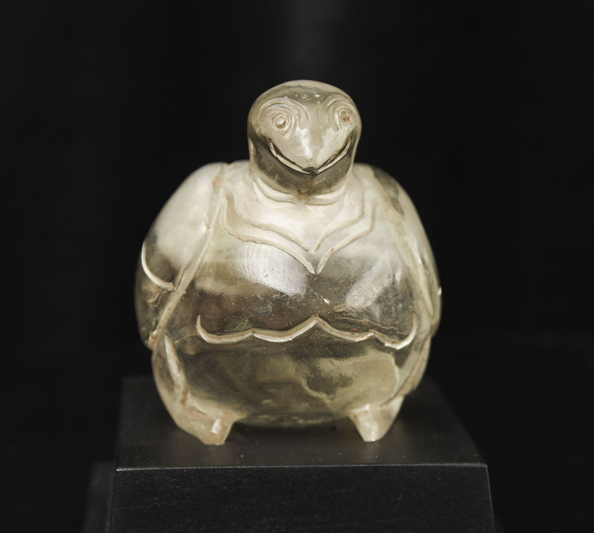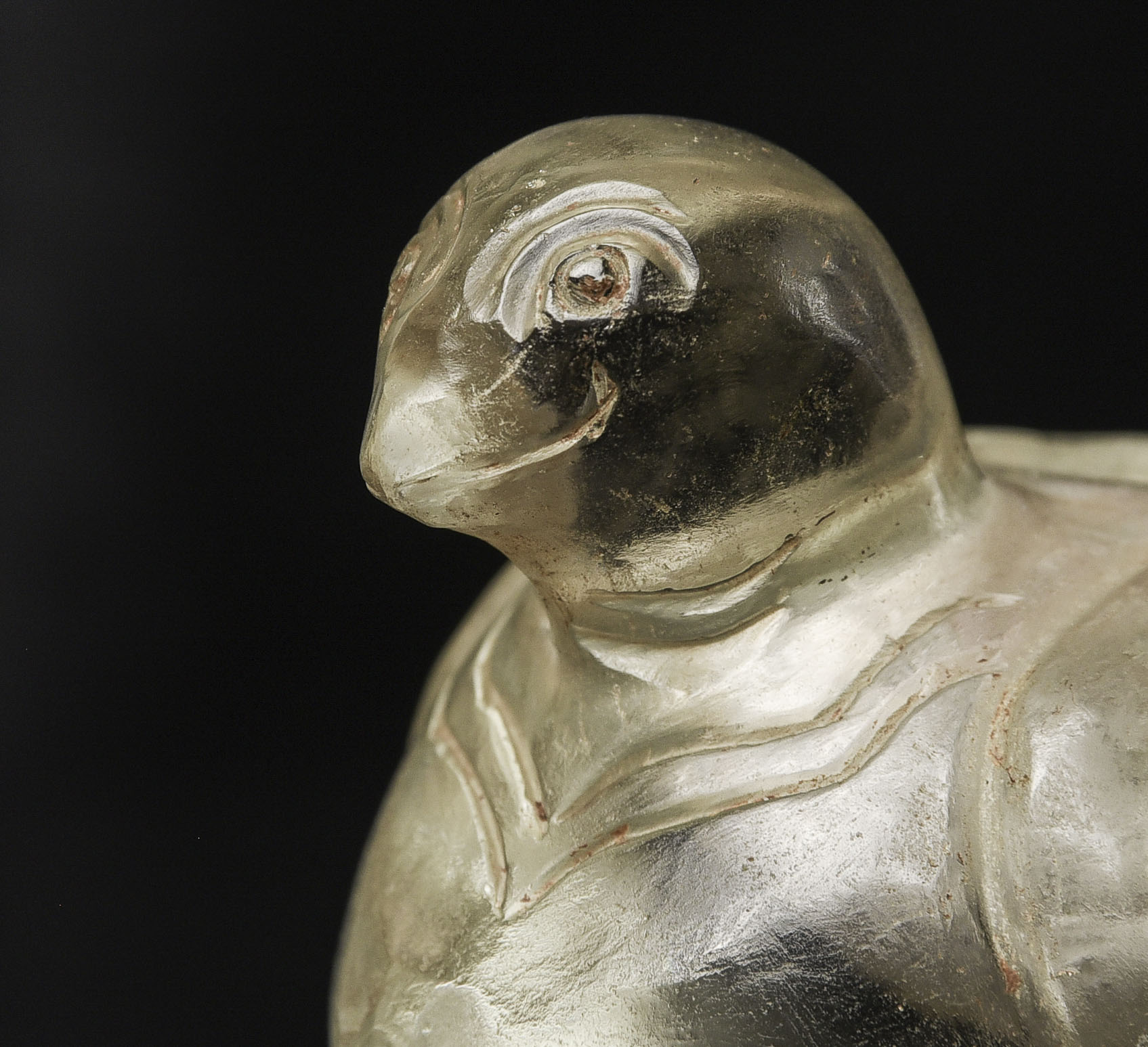 Very rare 16/17thC Bird-form crystal reliquary. Bird is 2 7/8 inches tall, 3 1/2 inches long, and 2 1/2 inches wide. The height on its custom stand is 4 3/8 inches. 345g. Excavated in North Thailand in the Hod district in the 1960s when a reservoir was going in and ancient temple ruins were being flooded. Originally would have had a gold top. Museum piece. Heavy. Carved with early tools From a world-class multi-generation collection of Thai antique Buddhist quartz crystal. The collection had to be partly sold off in the late 1990s due to the financial slowdown. I bought several-this is one of two I still have in my collection. 345g