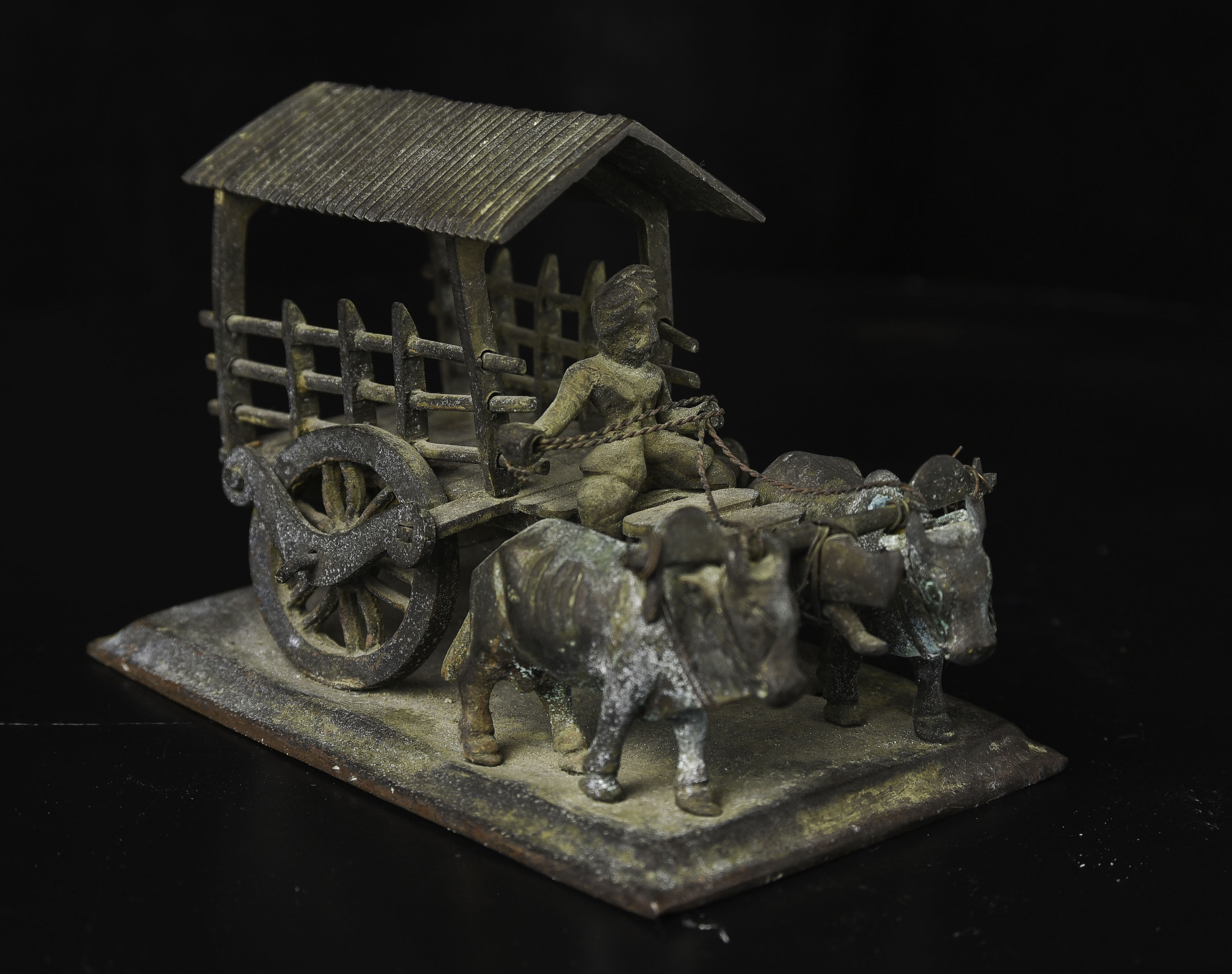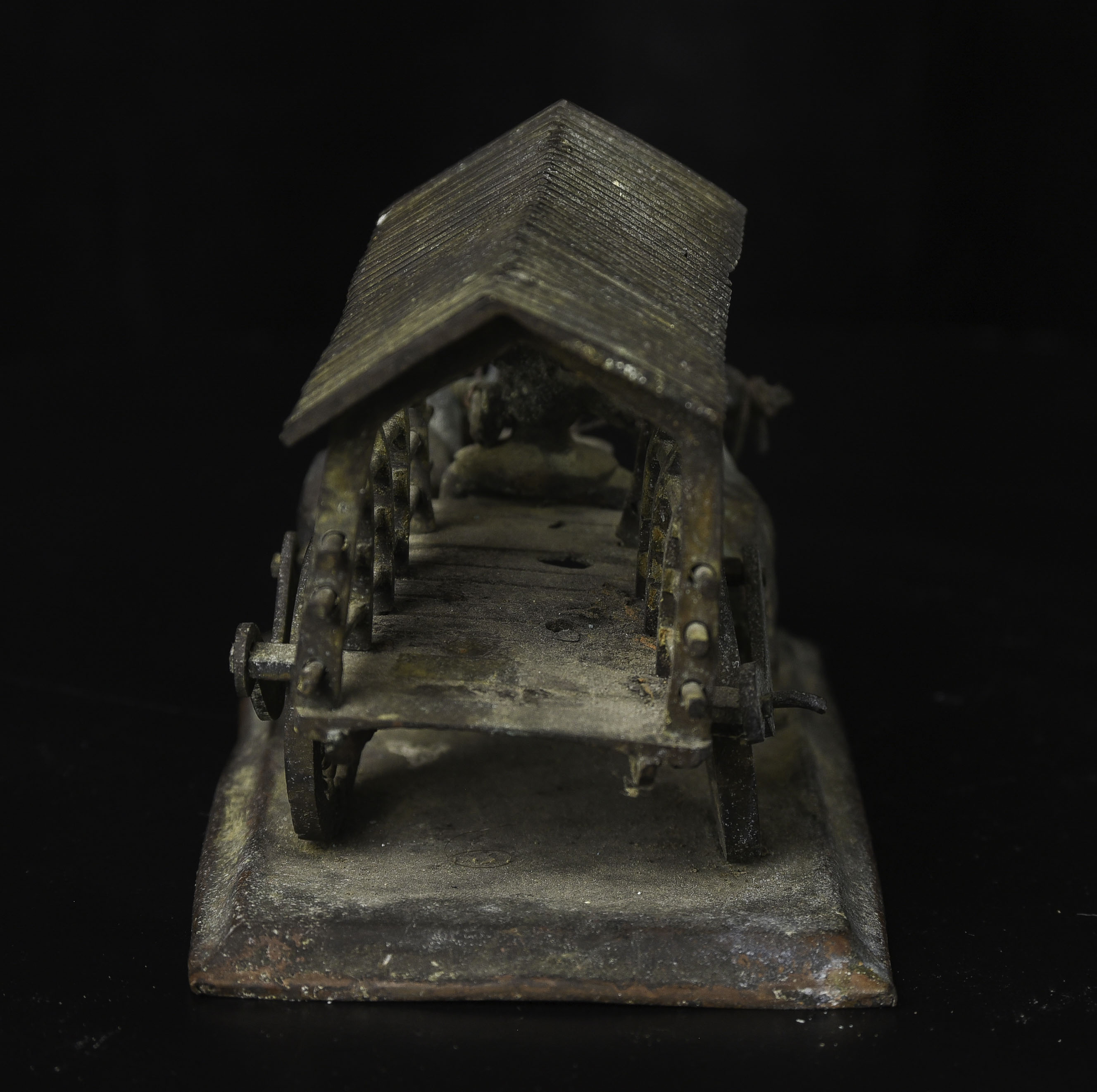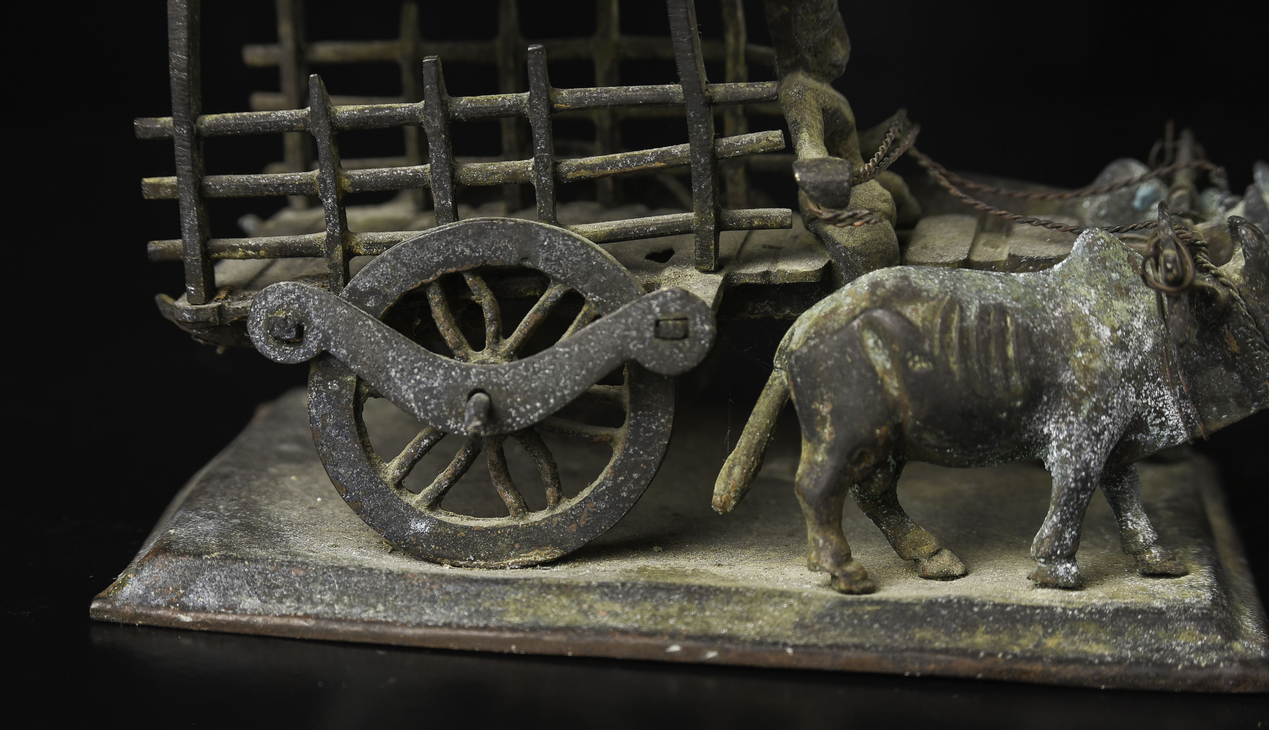 Wonderful antique oxcart from the famous Medina Cargo wreck, which sunk during WW1. Old Sotheby's sticker on the bottom from the original auction. 5.5" long, 3.75" tall, 3.25" wide. 430g