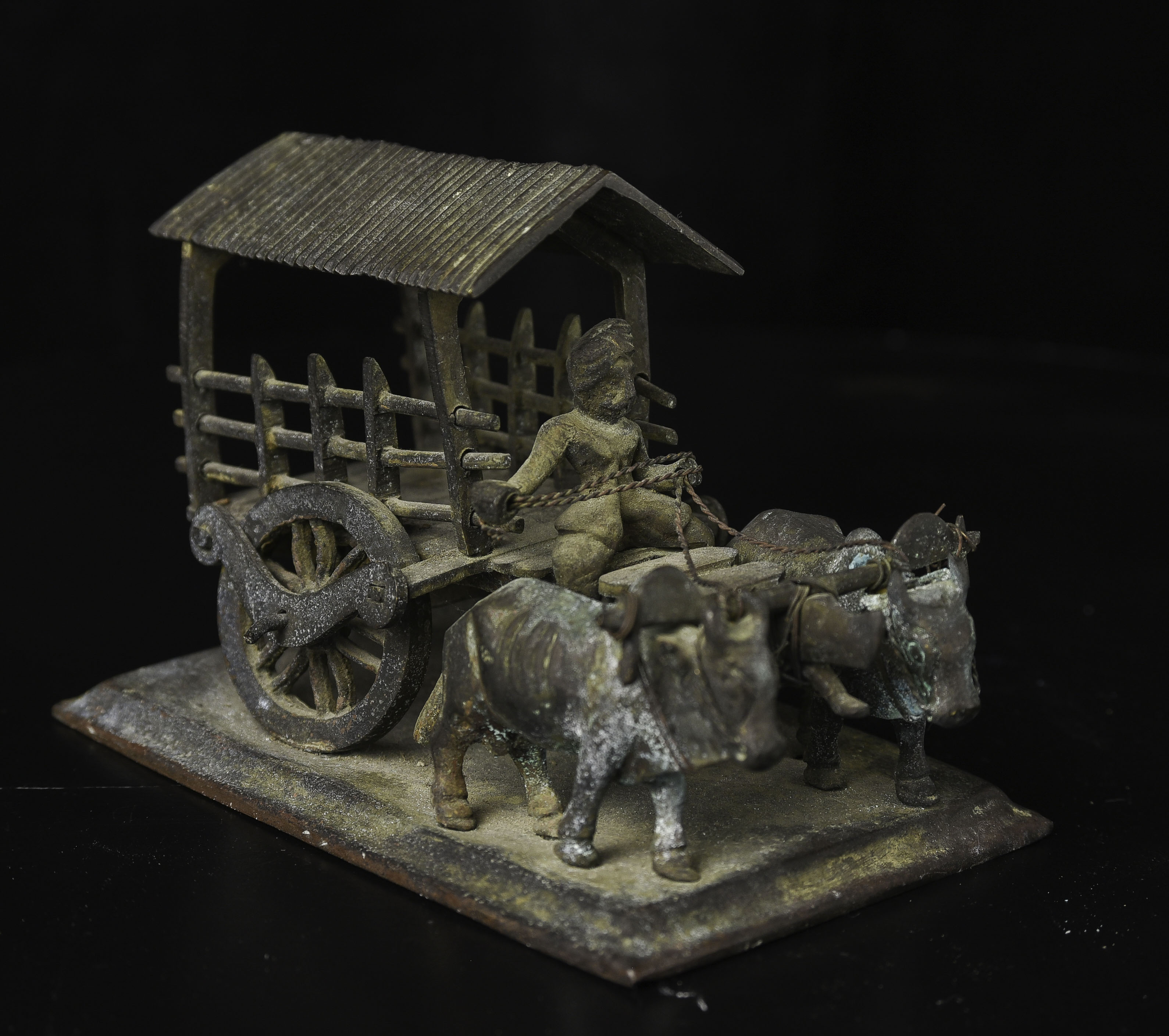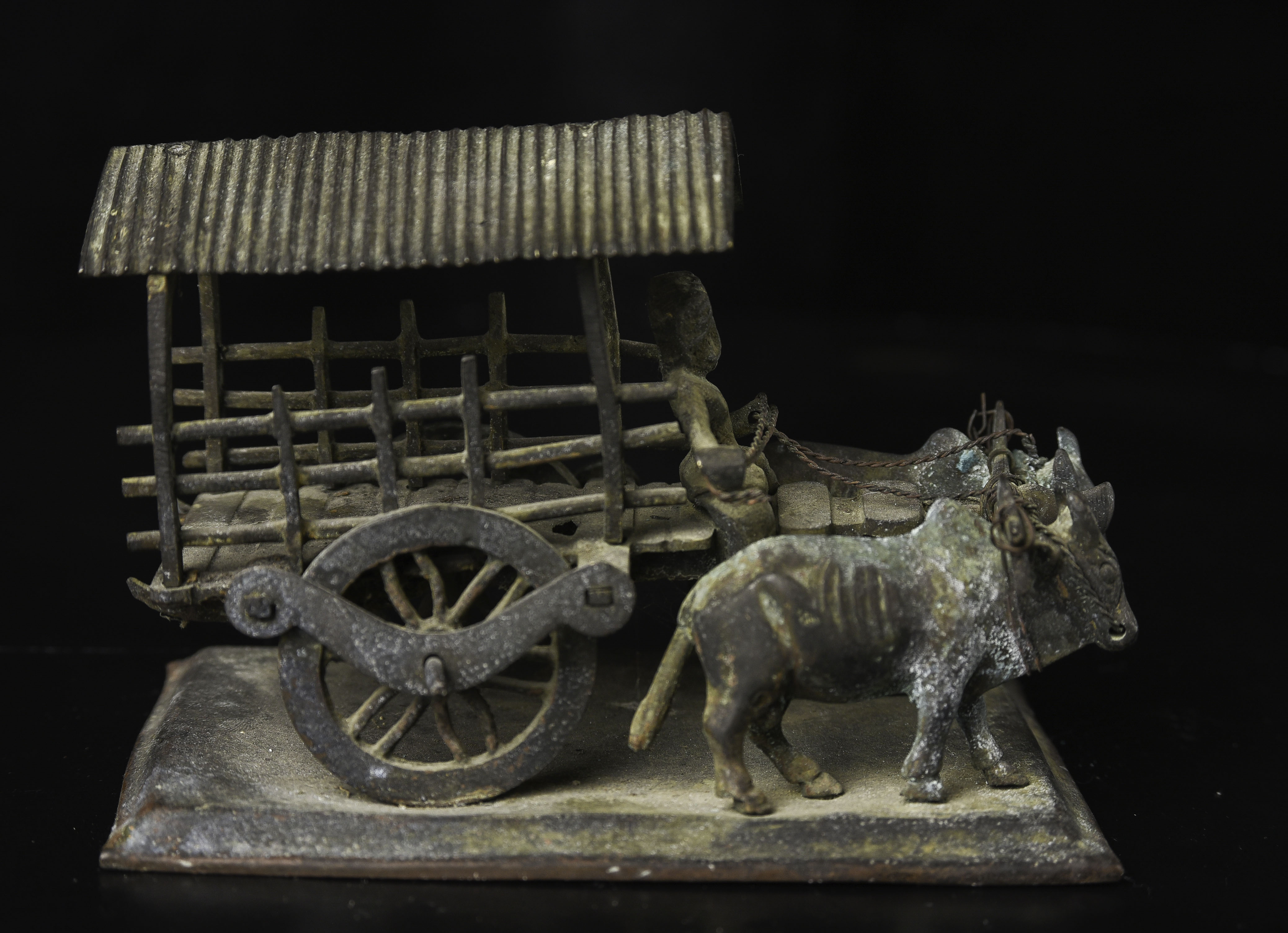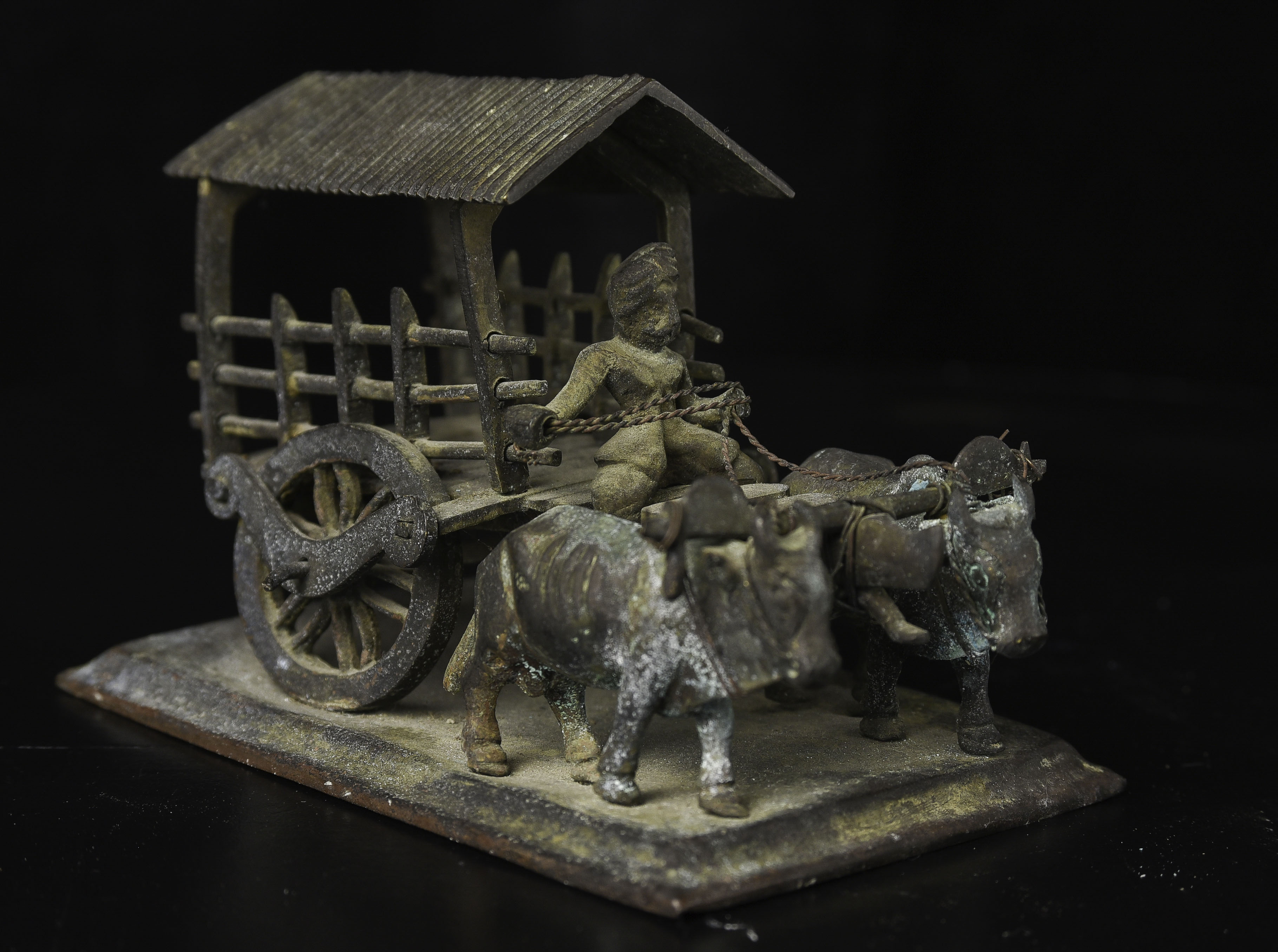 Wonderful antique oxcart from the famous Medina Cargo wreck, which sunk during WW1. Old Sotheby's sticker on the bottom from the original auction. 5.5" long, 3.75" tall, 3.25" wide. 430g