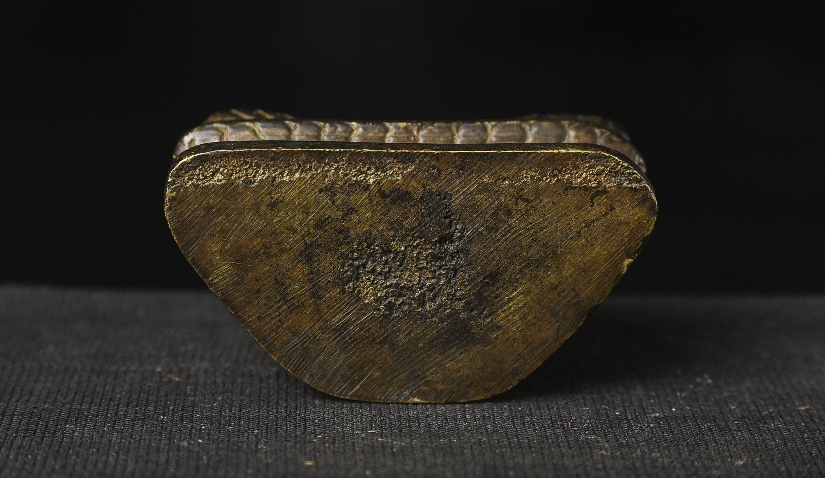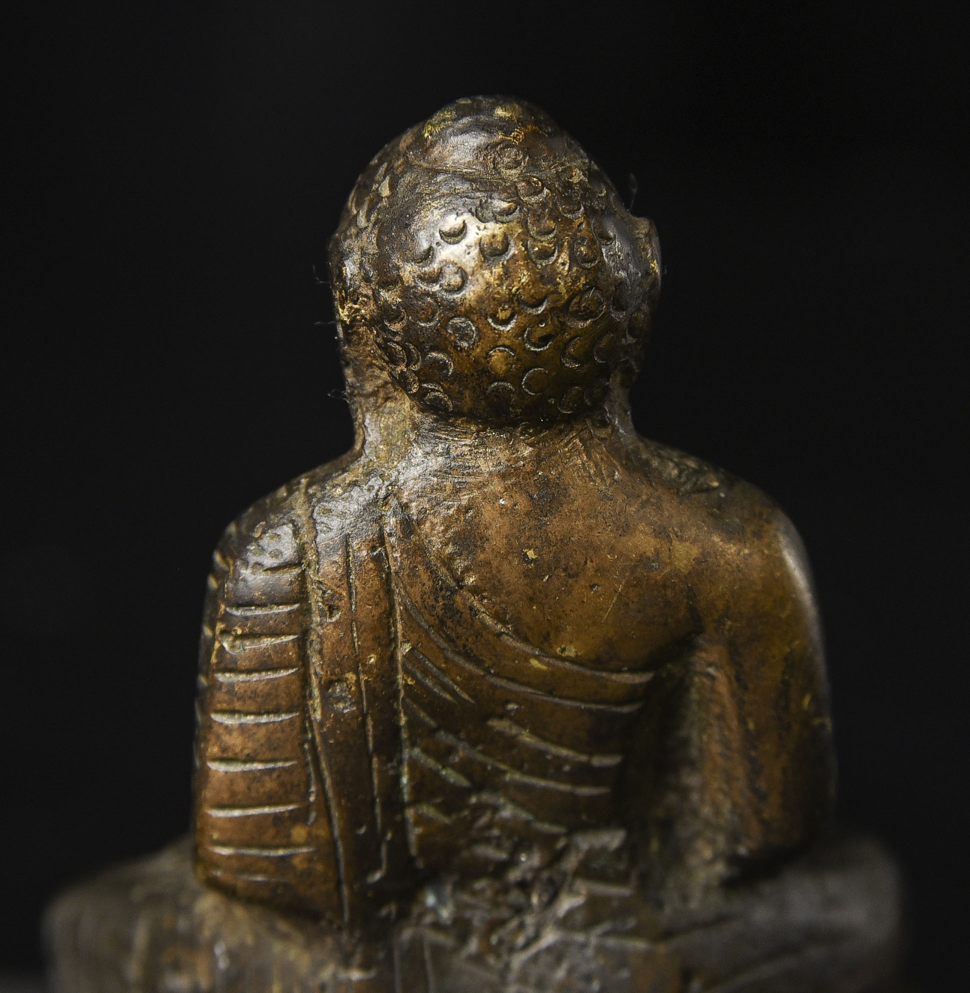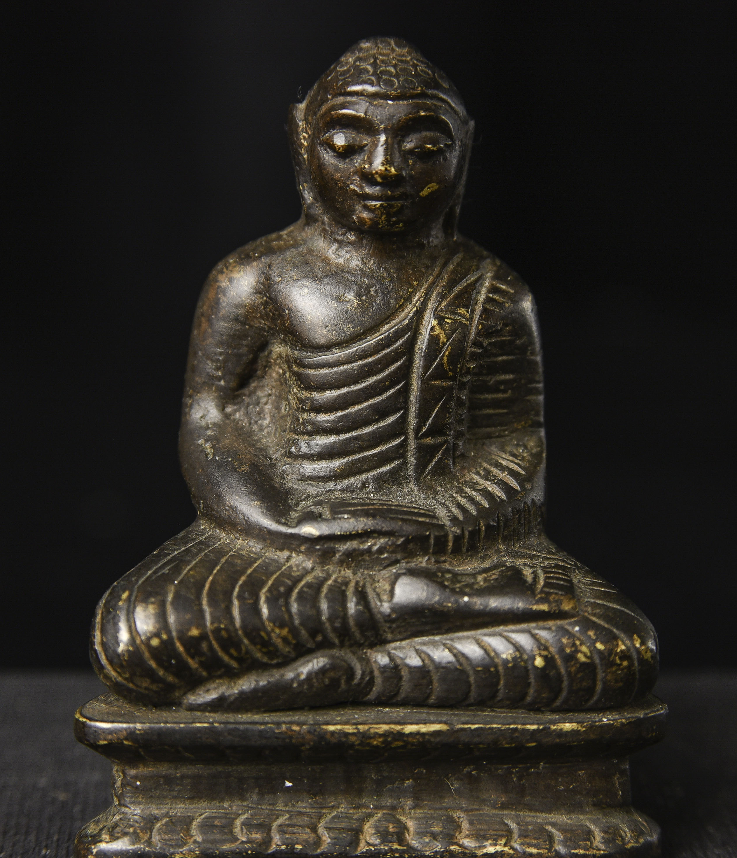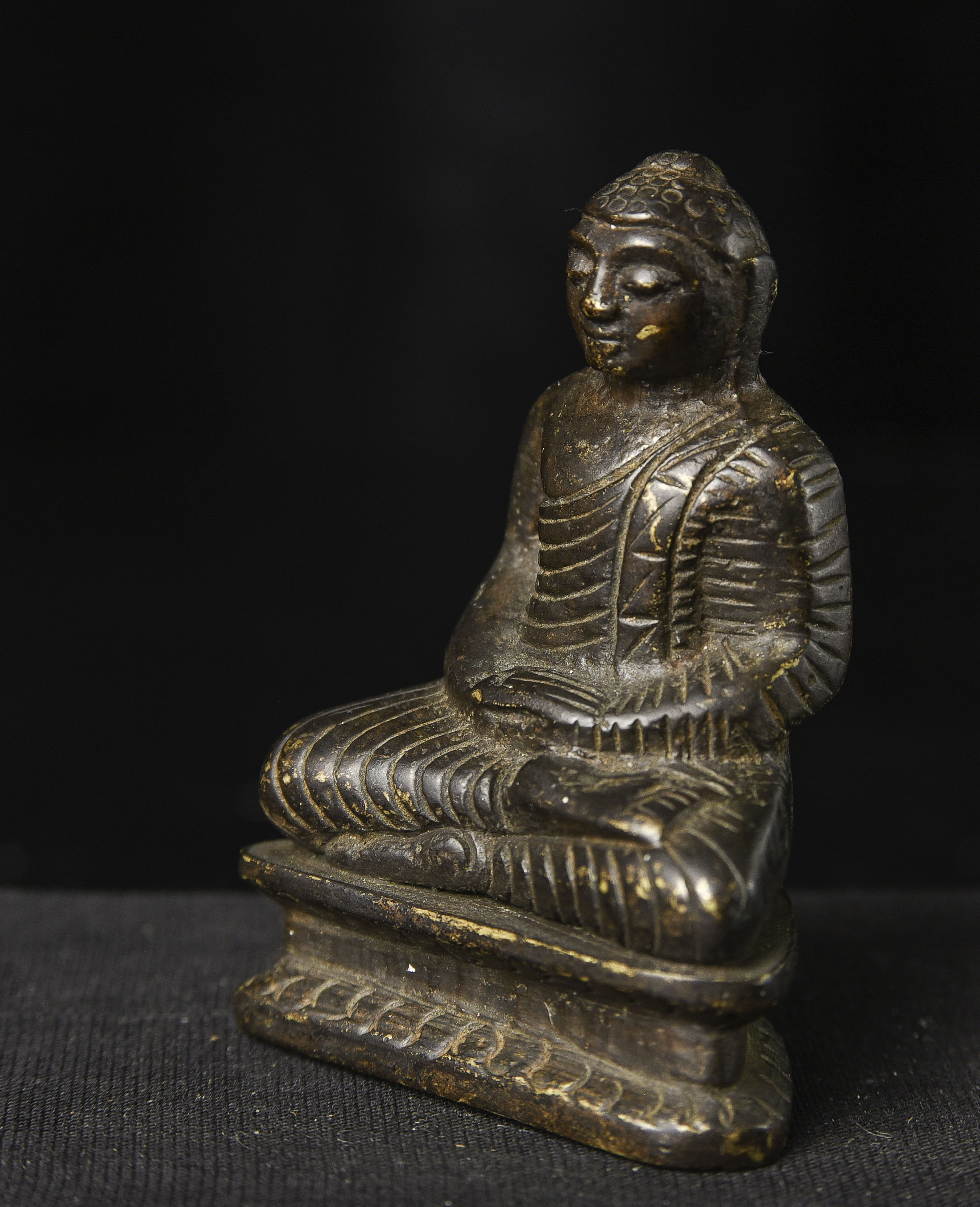 Sri Lankan bronze Buddha. In a very early style. Looks to have originally been gilded. Likely 18/19thC but possibly much earlier. 2 5/8 inches tall. Same type as Item #6639. 255g