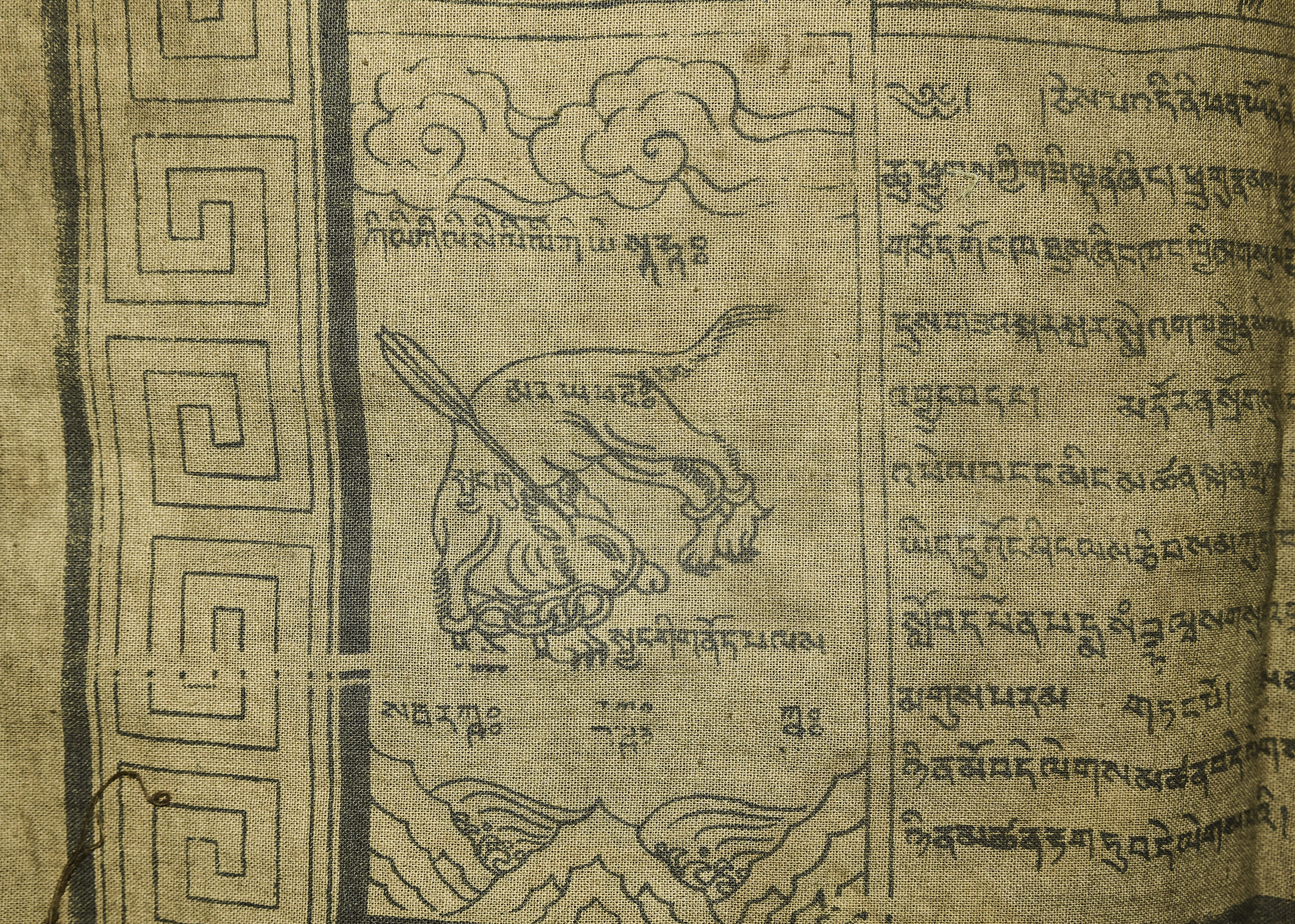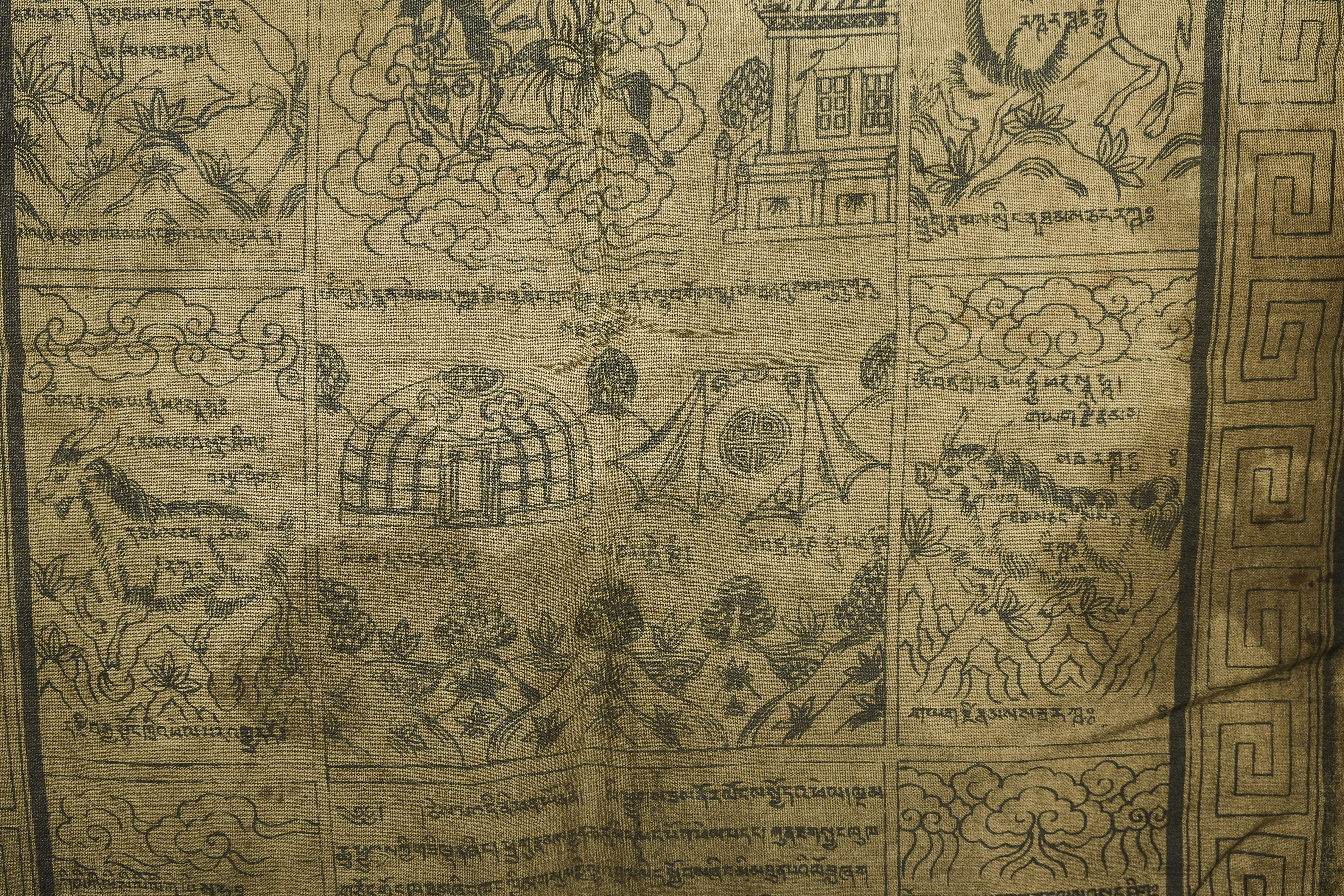 Antique Mongolian Buddhist Woodblock. 31" x 18.5"