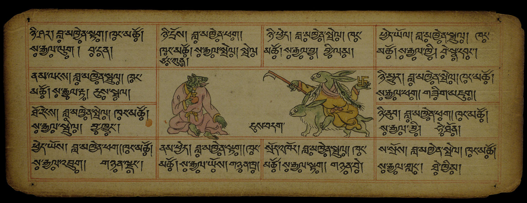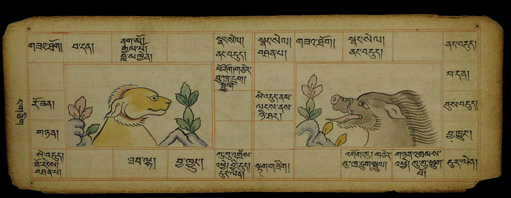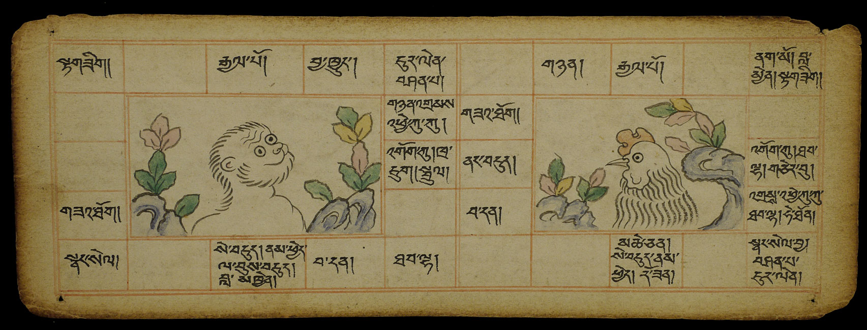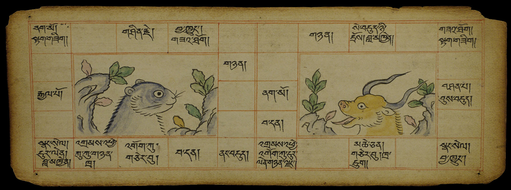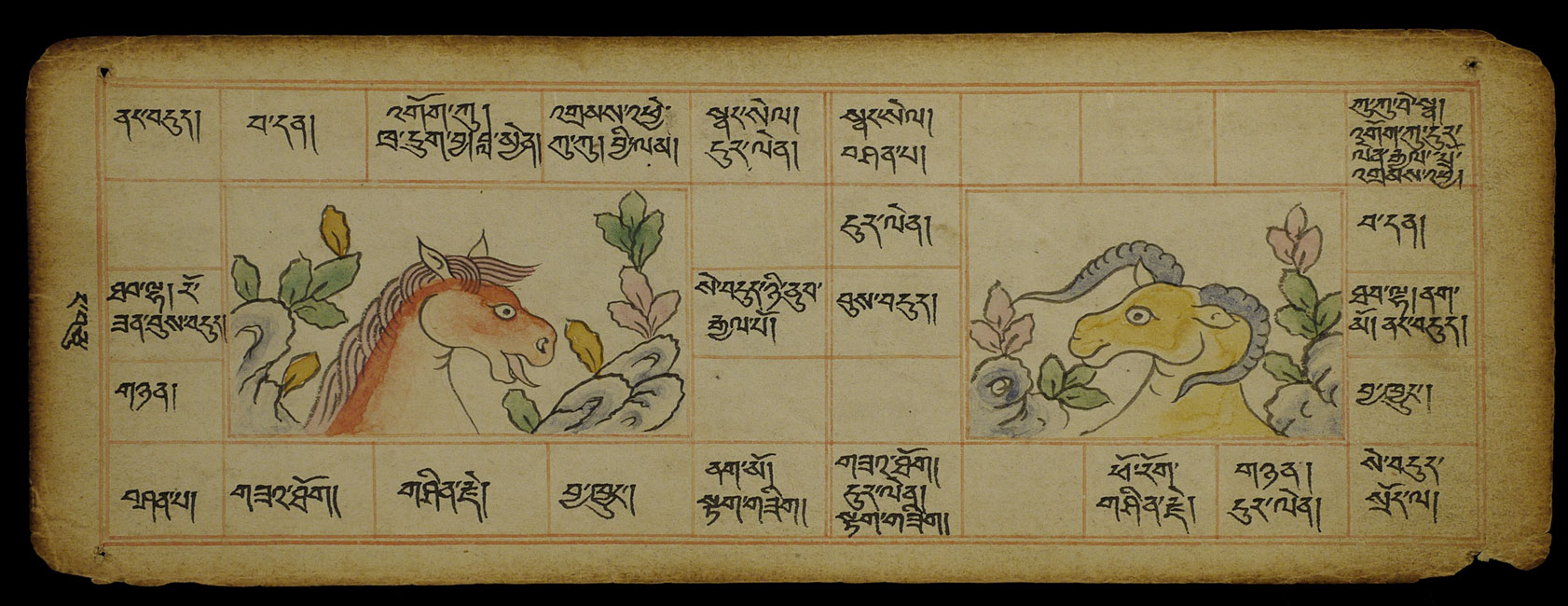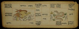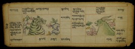 Very special antique Mongolian "book" with superb illustrations and very interesting covers. Many illustrations with exquisite detail. The writing is meticulously done by a master-for ritual use. Likely 19thC-possibly earlier The subject looks to be Astrology related. Finest quality artistry in any Mongolian book I have ever seen -anywhere-ever. Measures 7.5" wide, 2.5" tall, .5" deep. 73 page (sides).