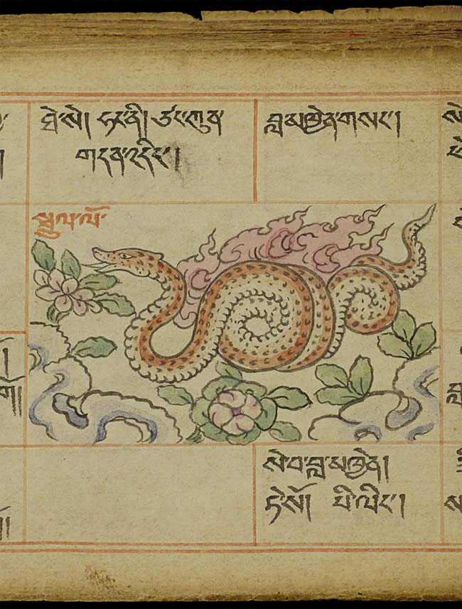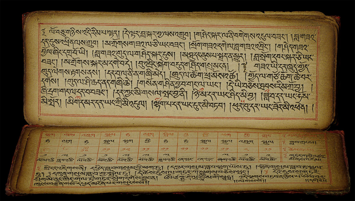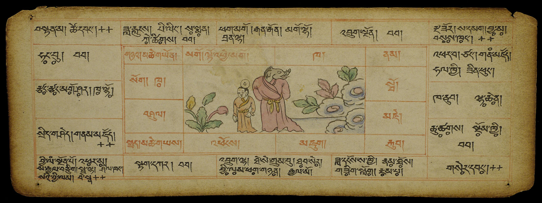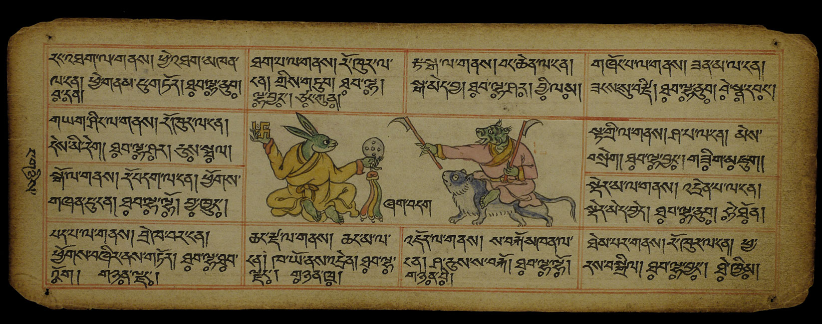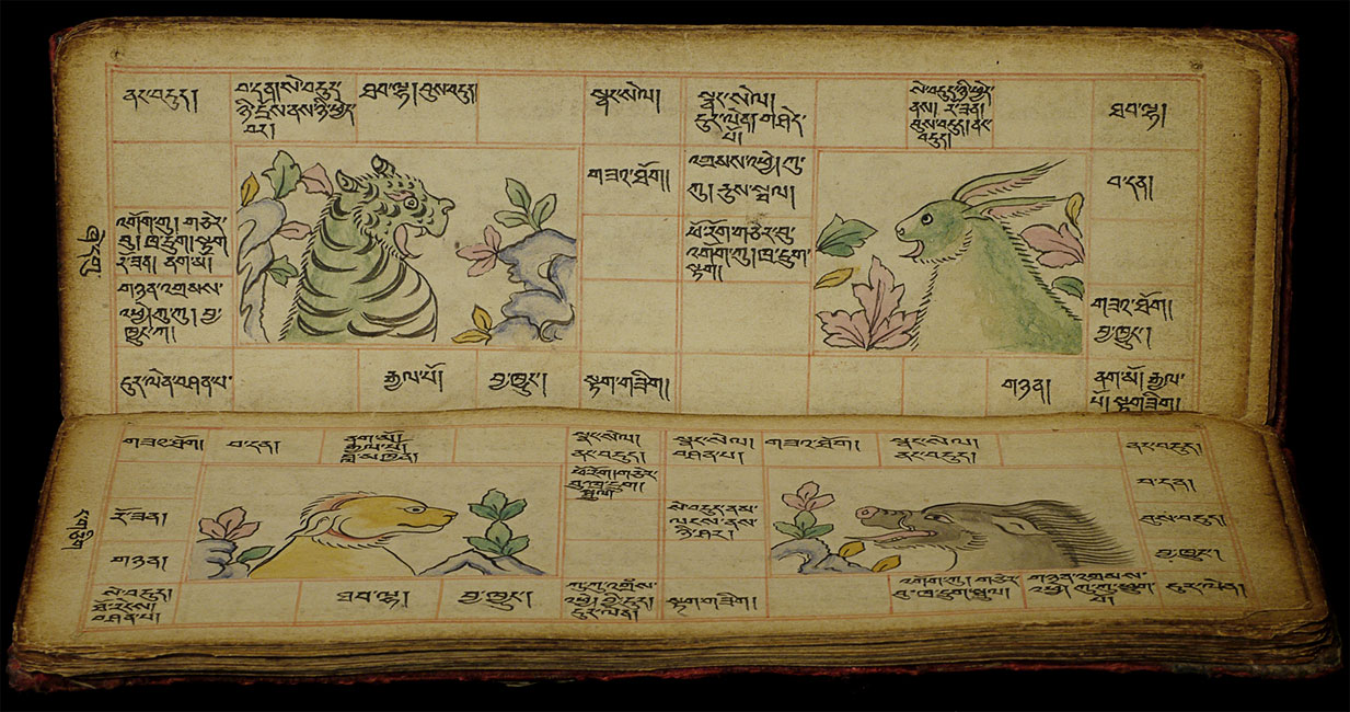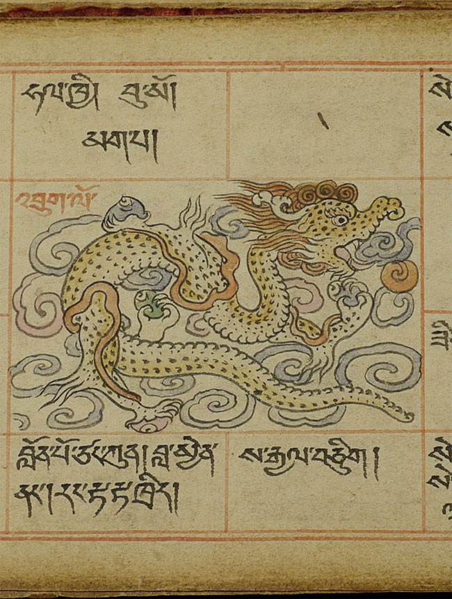 Very special antique Mongolian "book" with superb illustrations and very interesting covers. Many illustrations with exquisite detail. The writing is meticulously done by a master-for ritual use. Likely 19thC-possibly earlier The subject looks to be Astrology related. Finest quality artistry in any Mongolian book I have ever seen -anywhere-ever. Measures 7.5" wide, 2.5" tall, .5" deep. 73 page (sides).