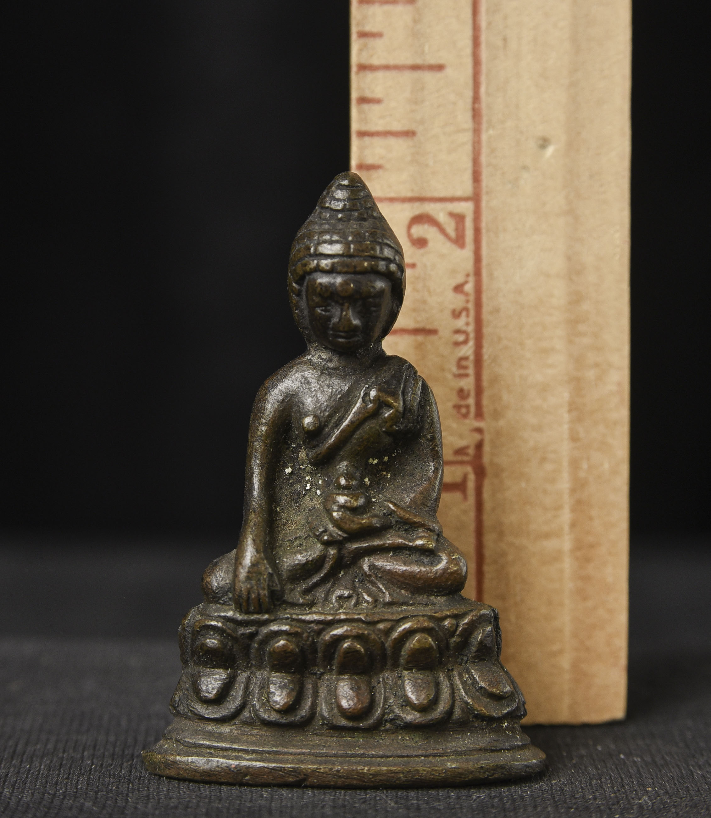 BUDDHA , 19th Century Tibet , Bronze, ( 2.125" H x 1.5"W - 95g )