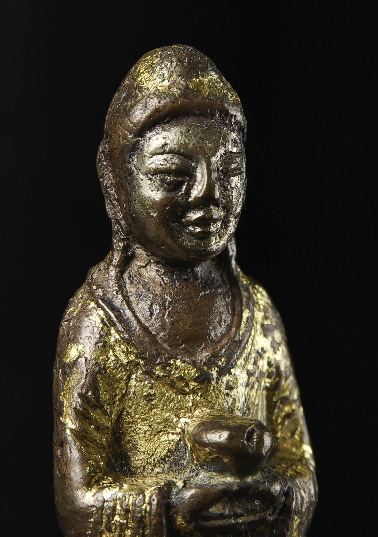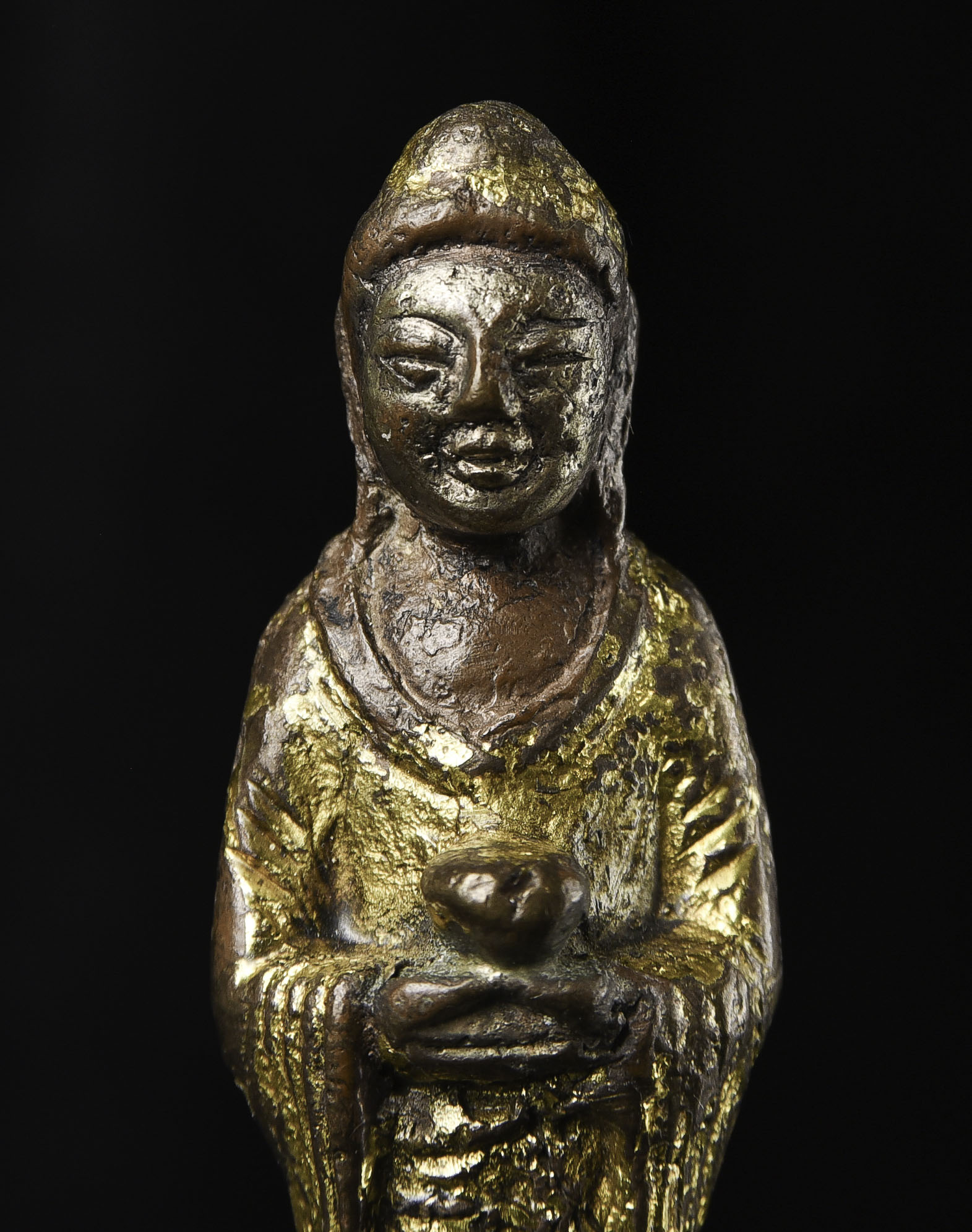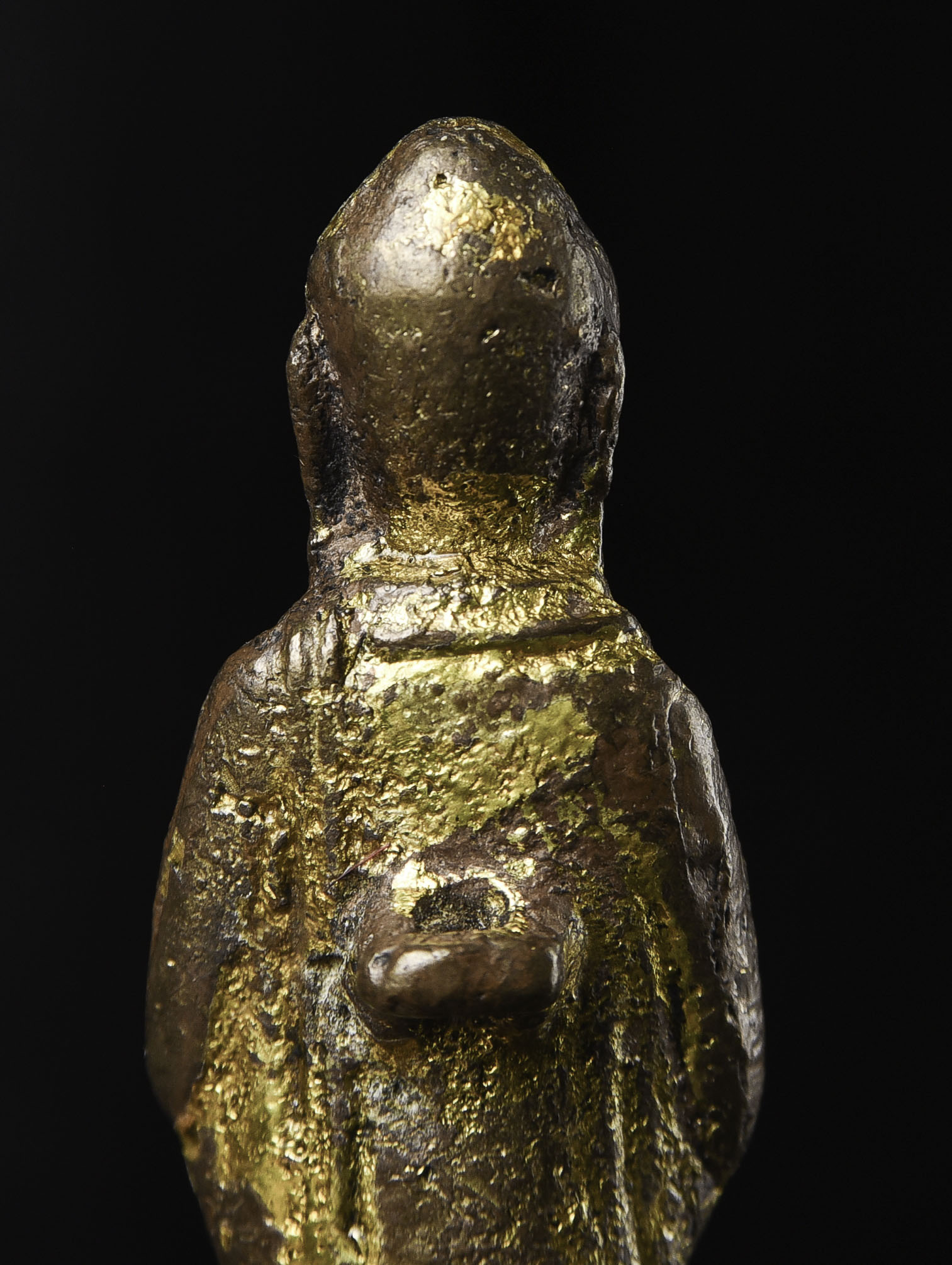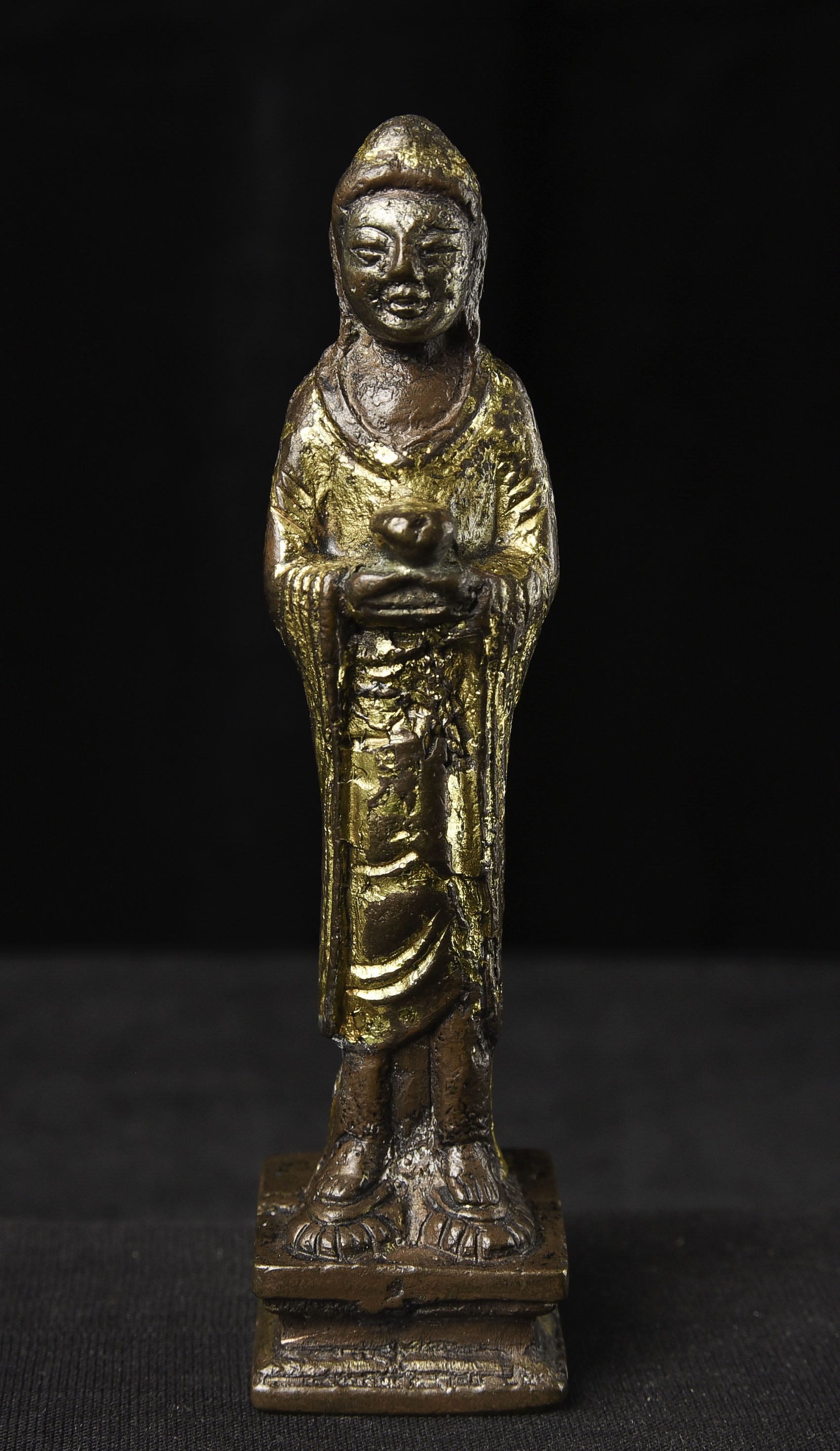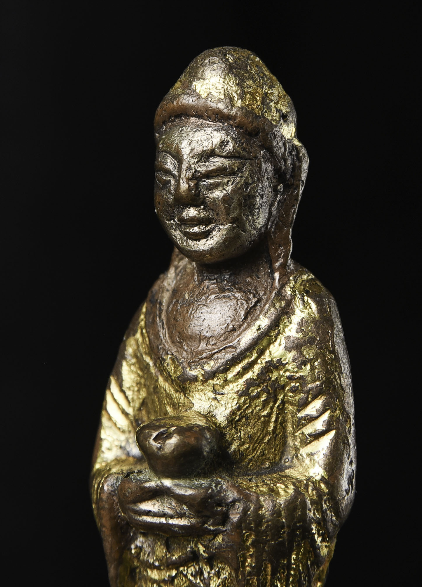 Chinese Liao-style Bronze Buddha with a silvered face and gilded robes. Not seen a piece like this before. 20th C. " H x 1.25"w - 210g. Domestic shipping is included, and International shipping will be $30.