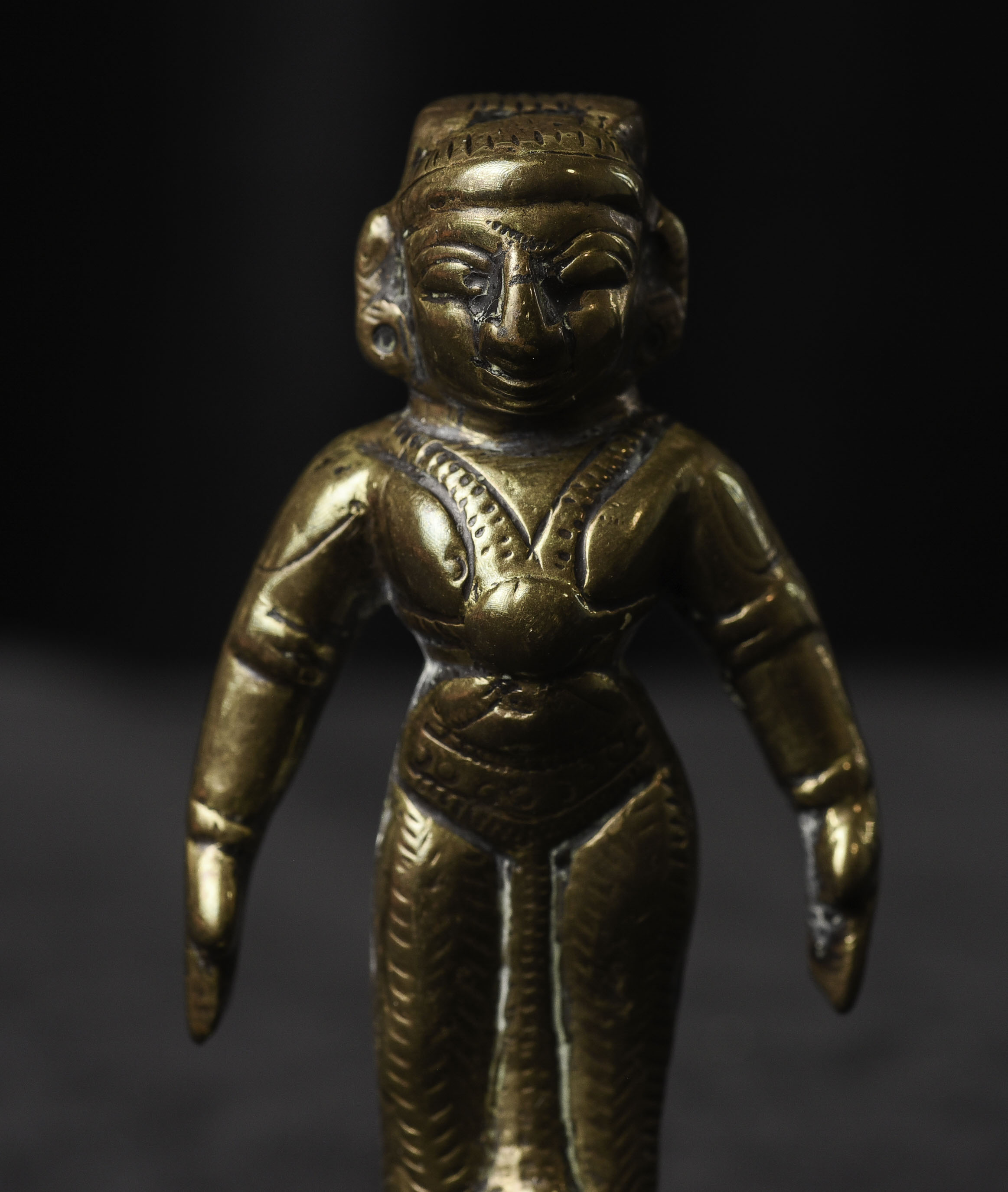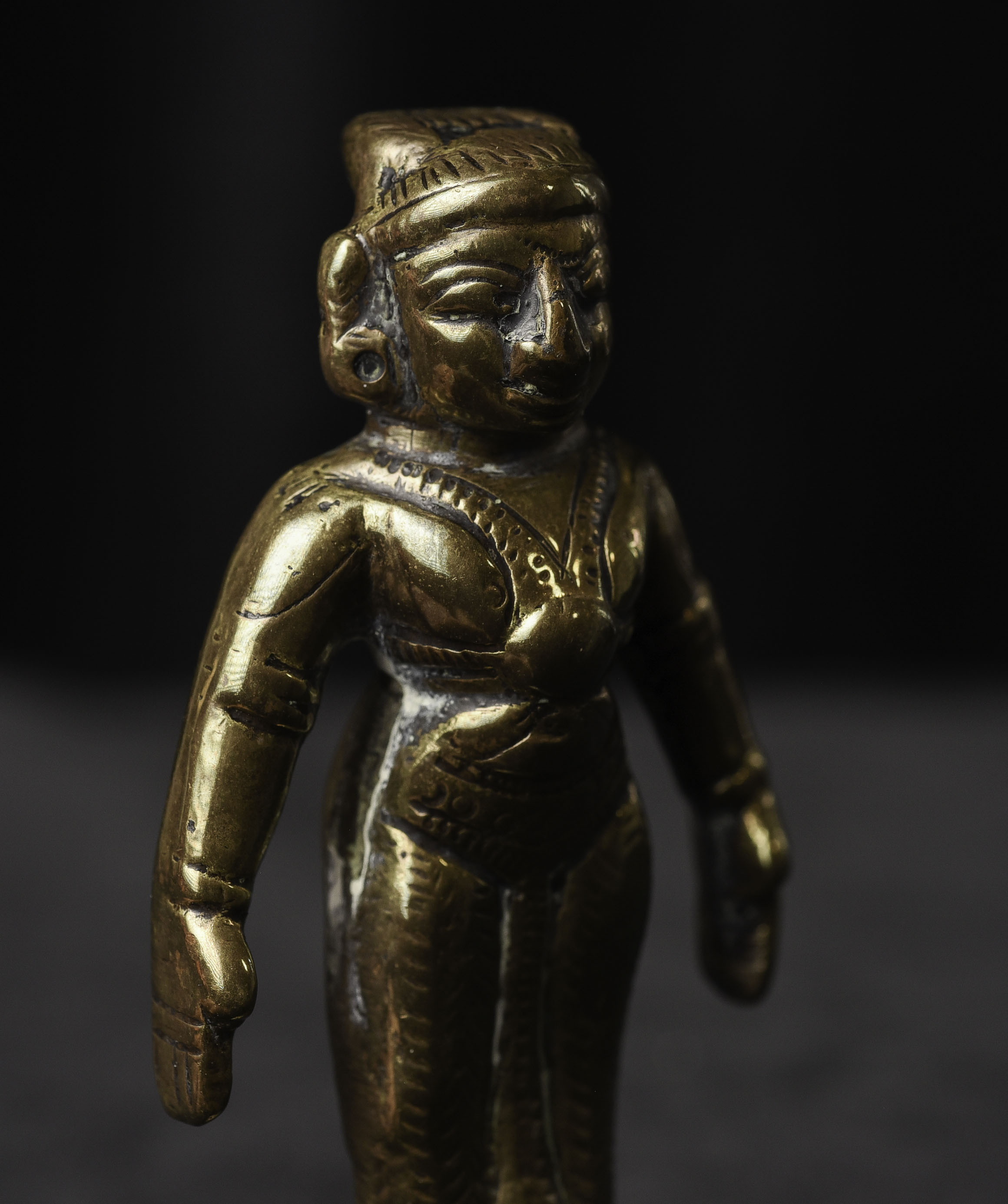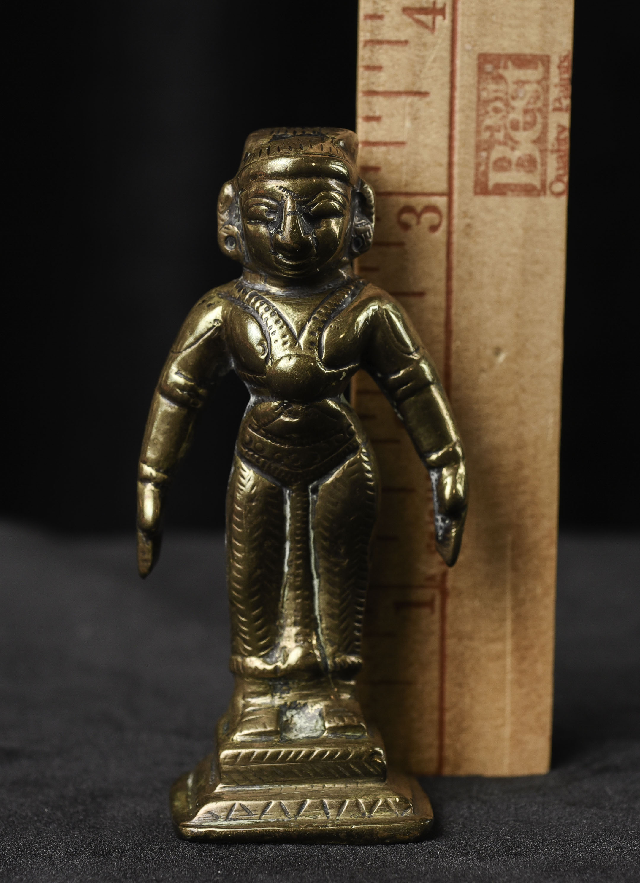 Antique Hindu Bronze Figure - 3.375"H x 1.5"W - 155g. Domestic shipping is included, and International shipping will be $30.