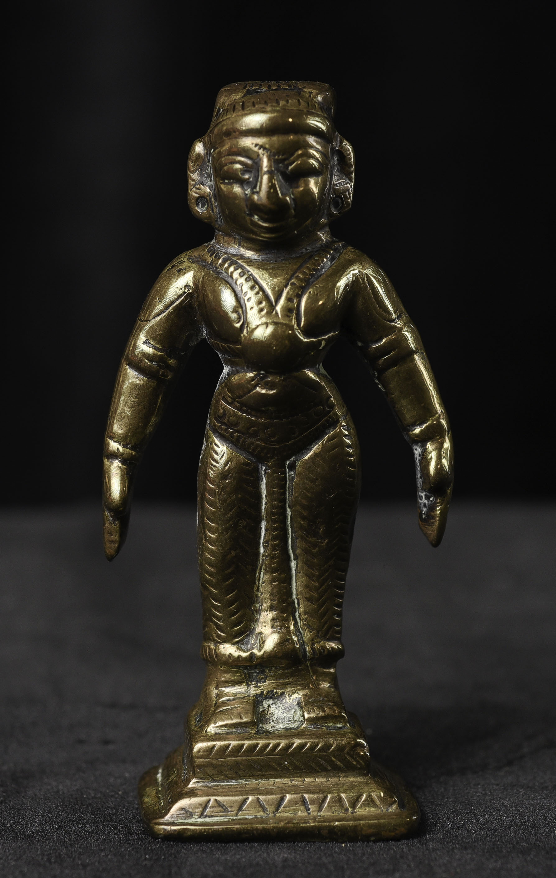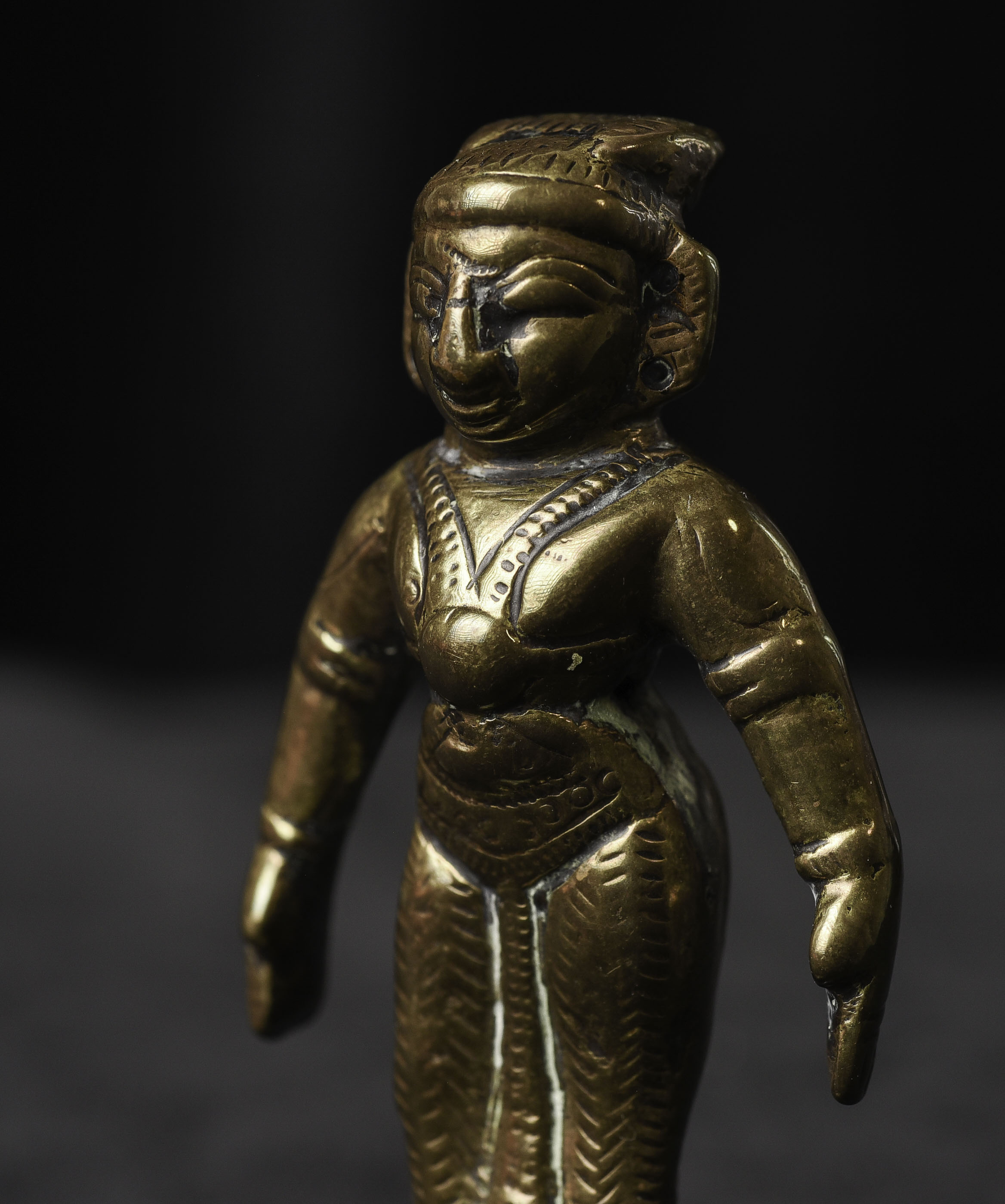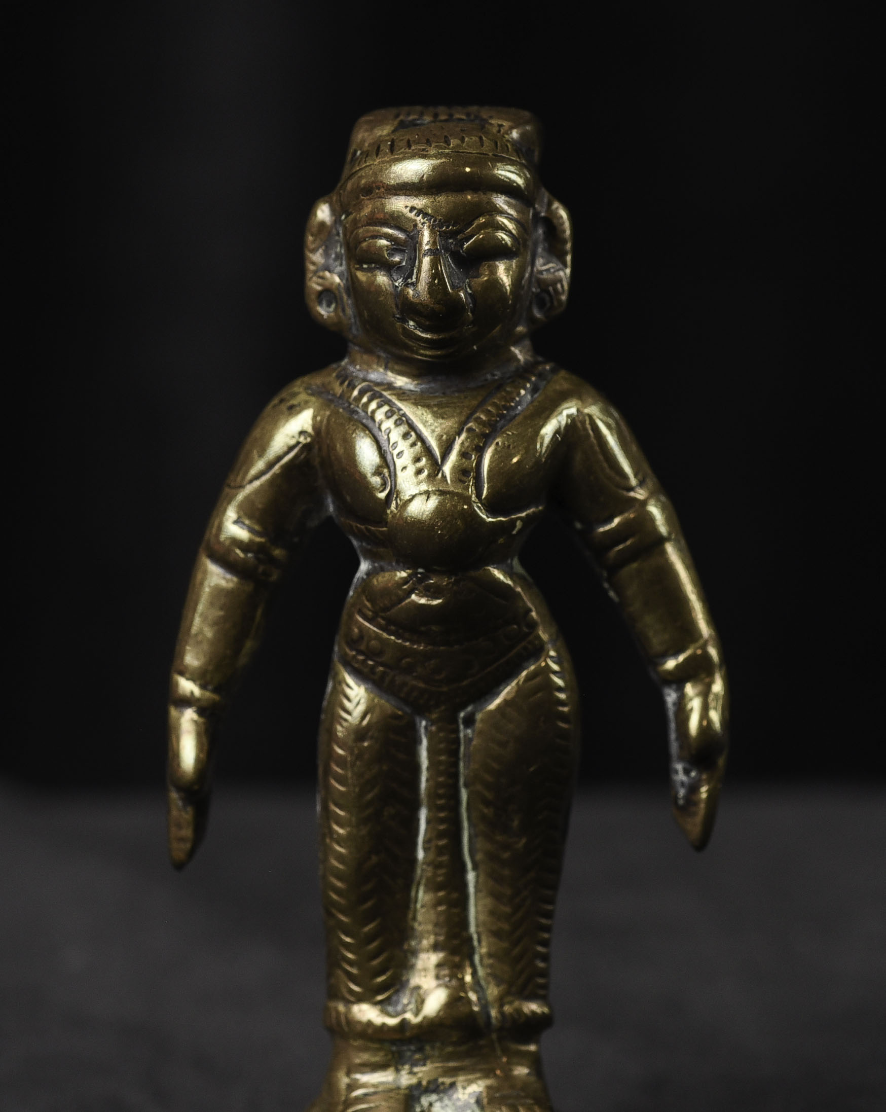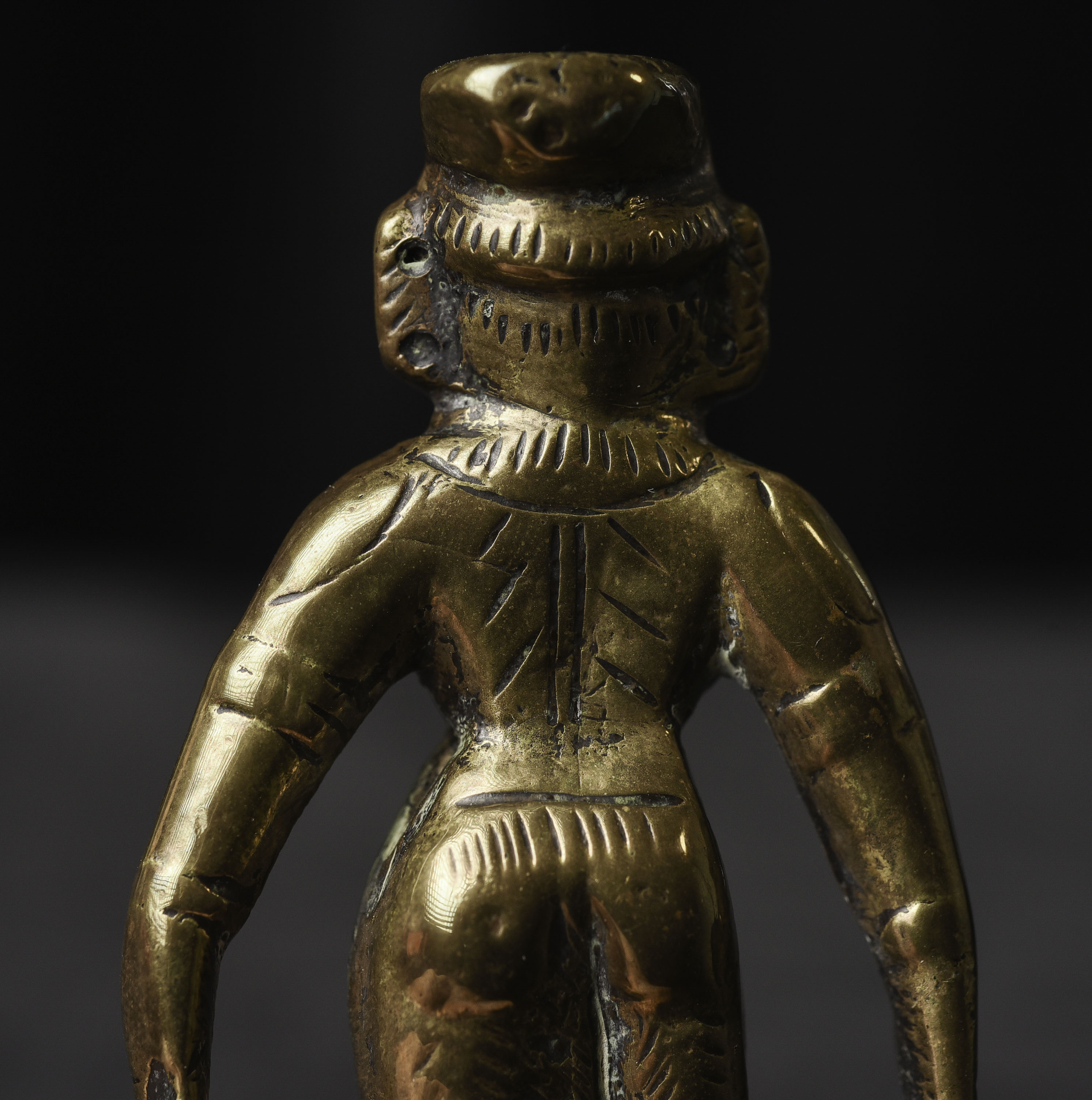 Antique Hindu Bronze Figure - 3.375"H x 1.5"W - 155g. Domestic shipping is included, and International shipping will be $30.