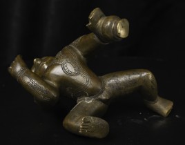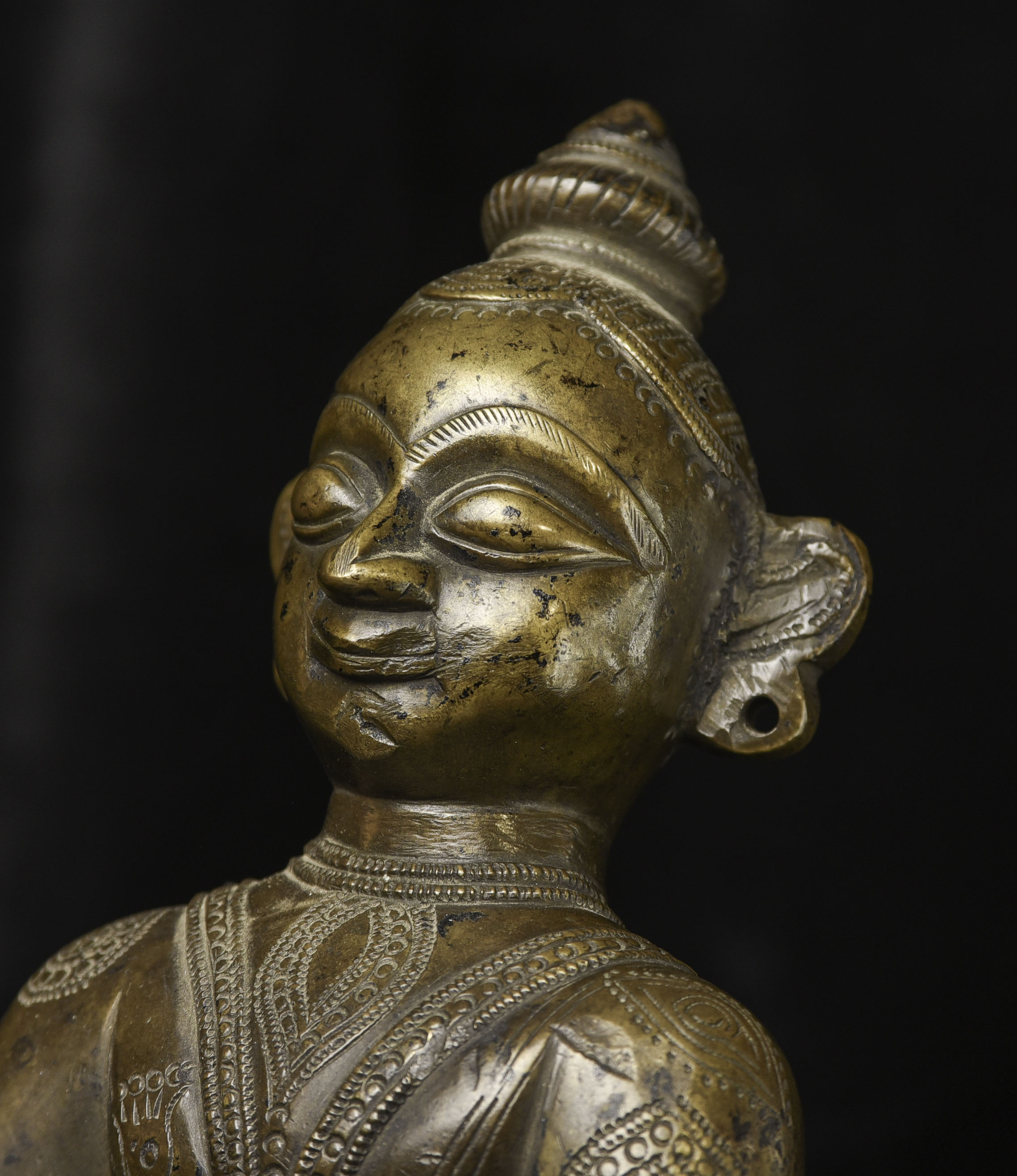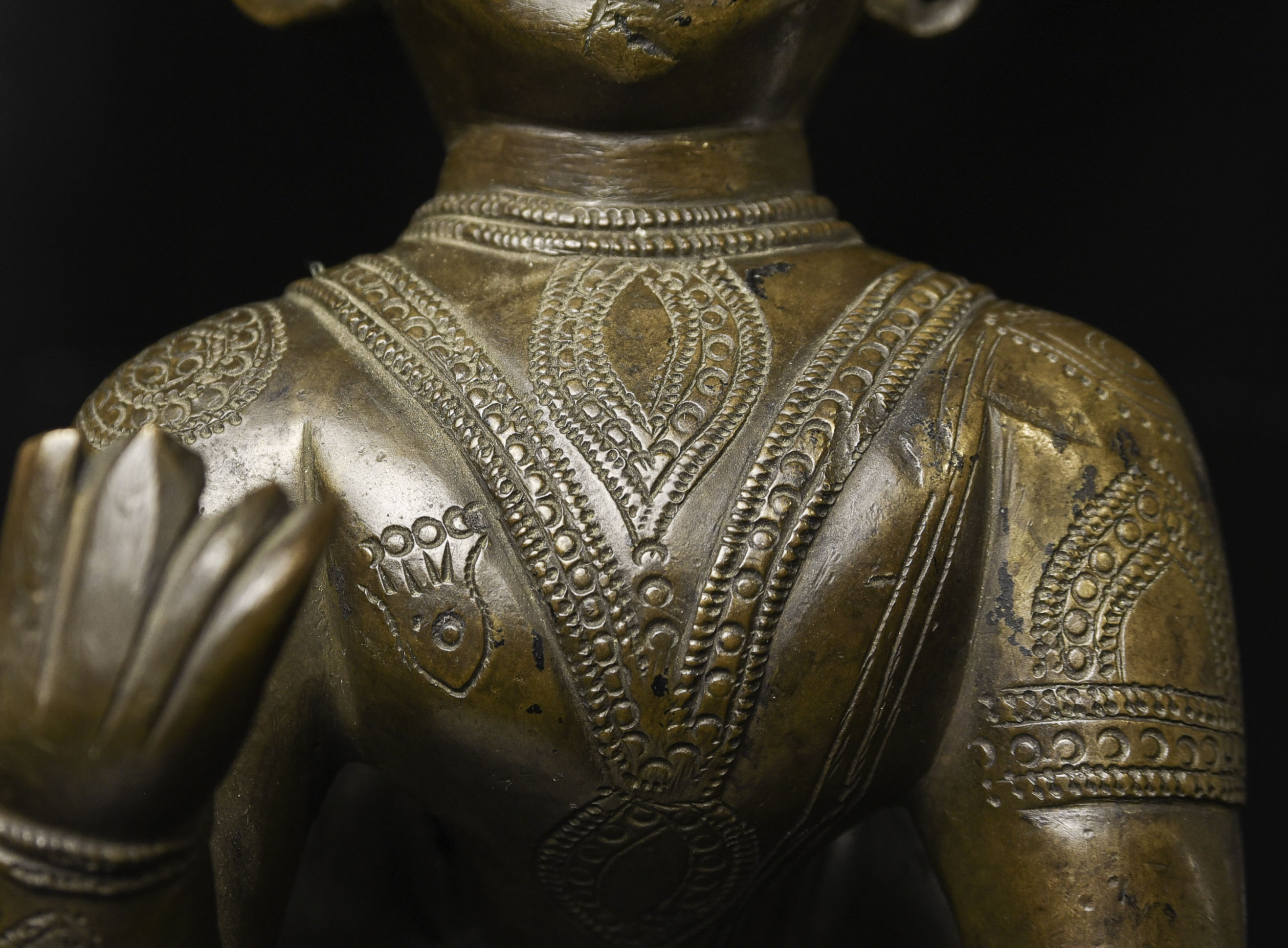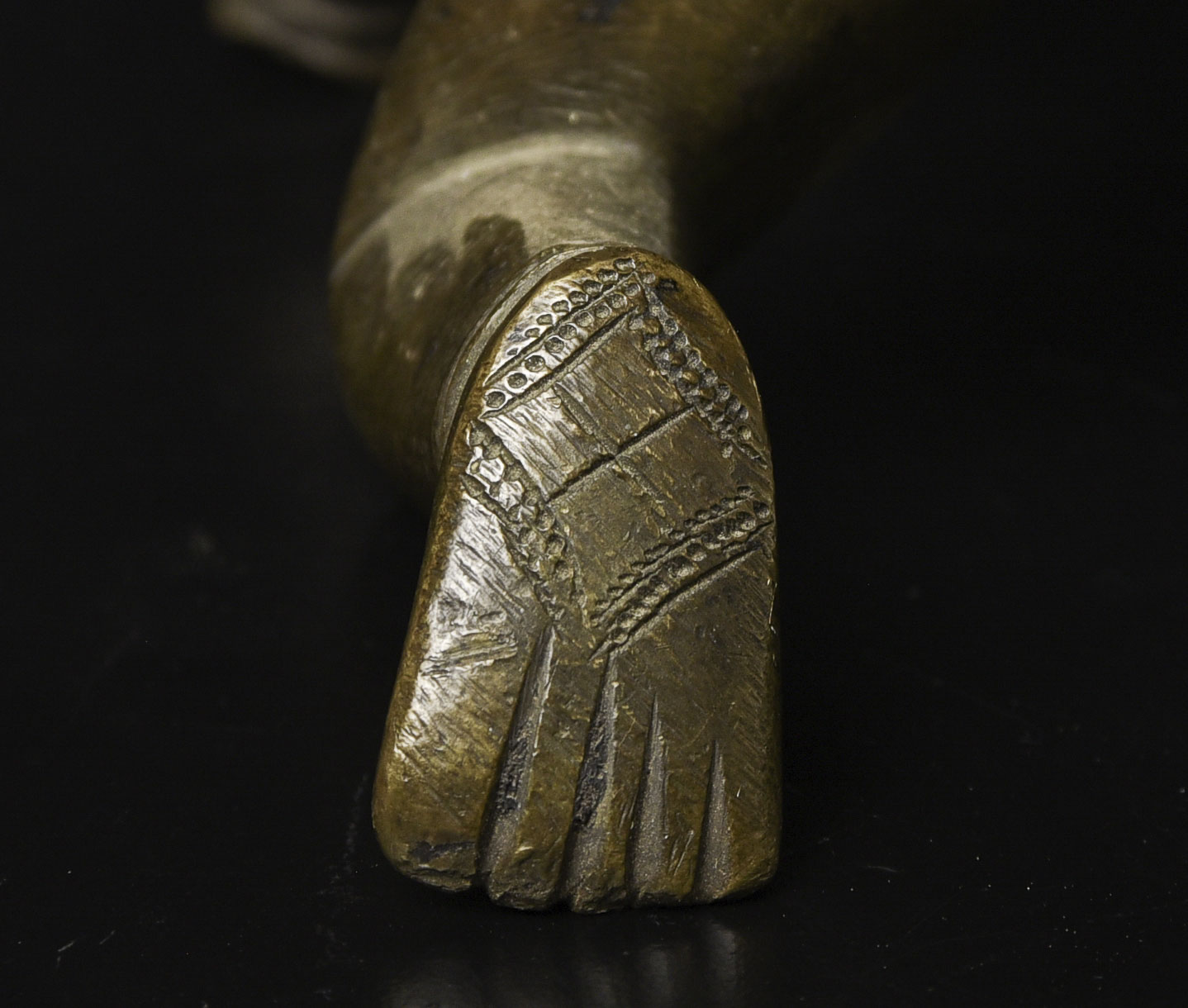 Huge antique baby Krishna, Incredibly heavy. Loss of butterball along with fingertips in one hand. Largest I've offered- he probably weighs as much as 20 baby Krishna's of typical size. (7.25"H x 4"W x 6"D ) - 6.88lbs / 3.120kg