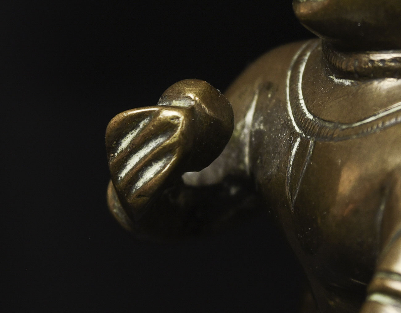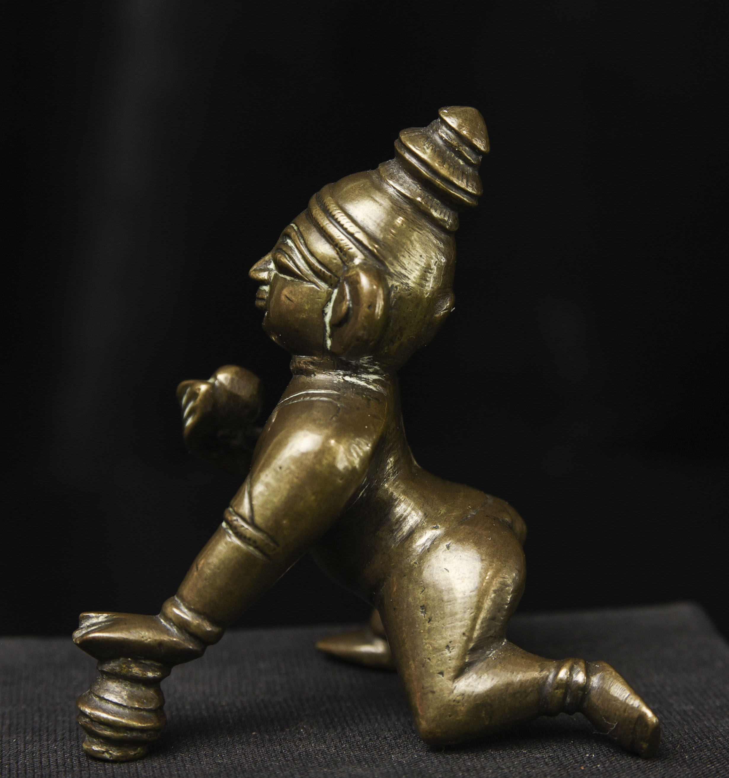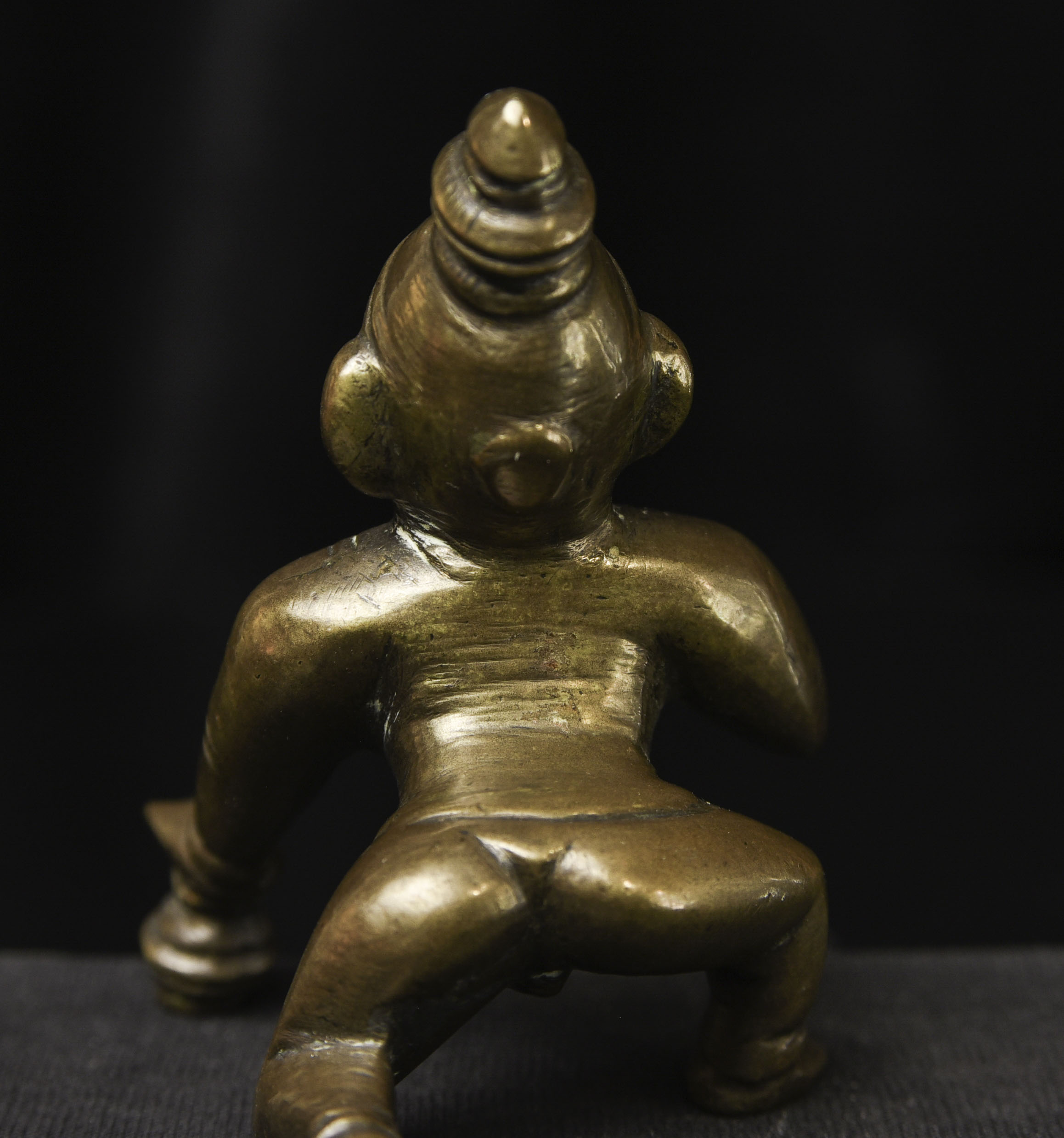Antique Indian bronze Baby Krishna with his butterball. Happy face. (3"H x 2.25"W x 2.75"D ) - 245g
