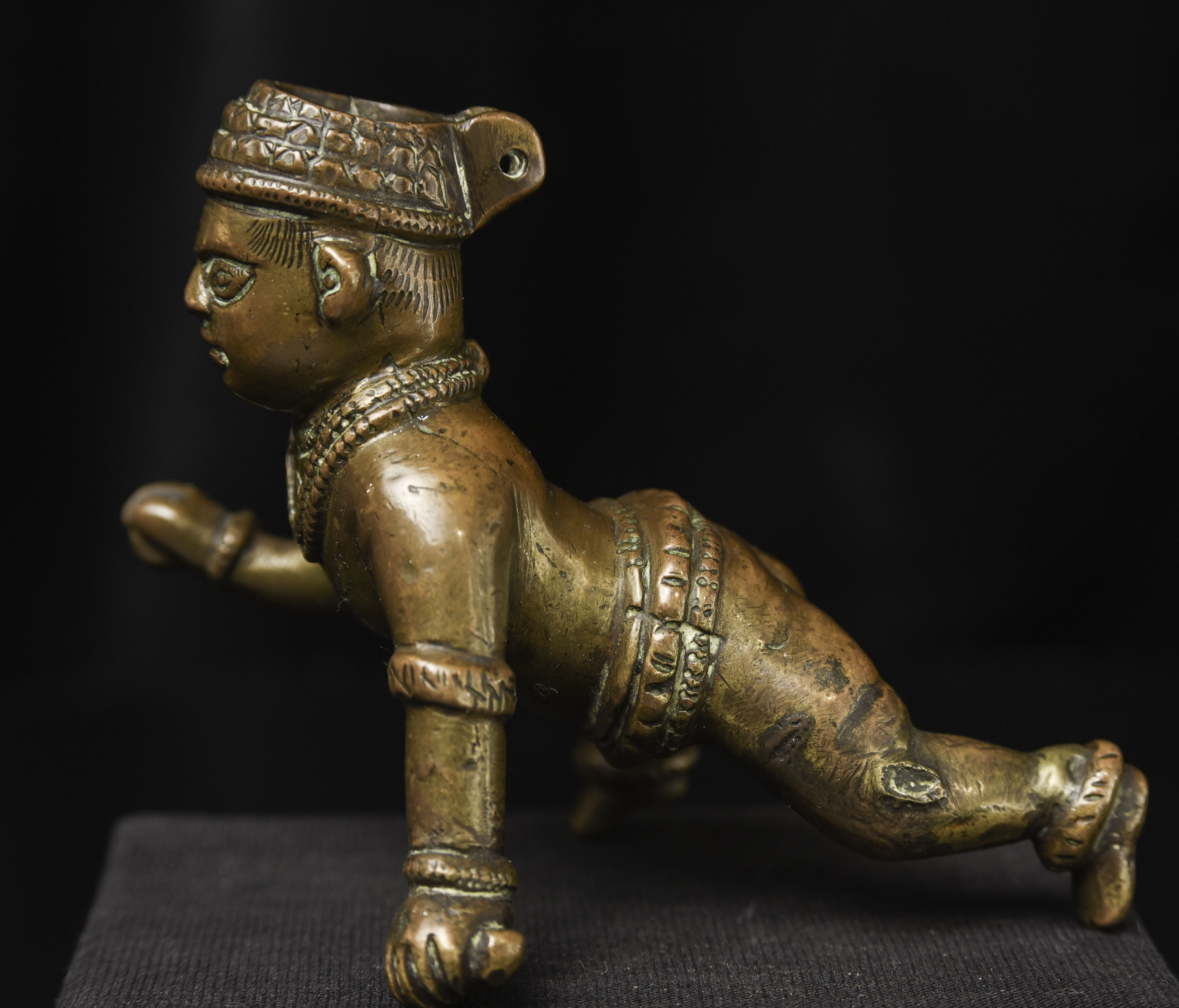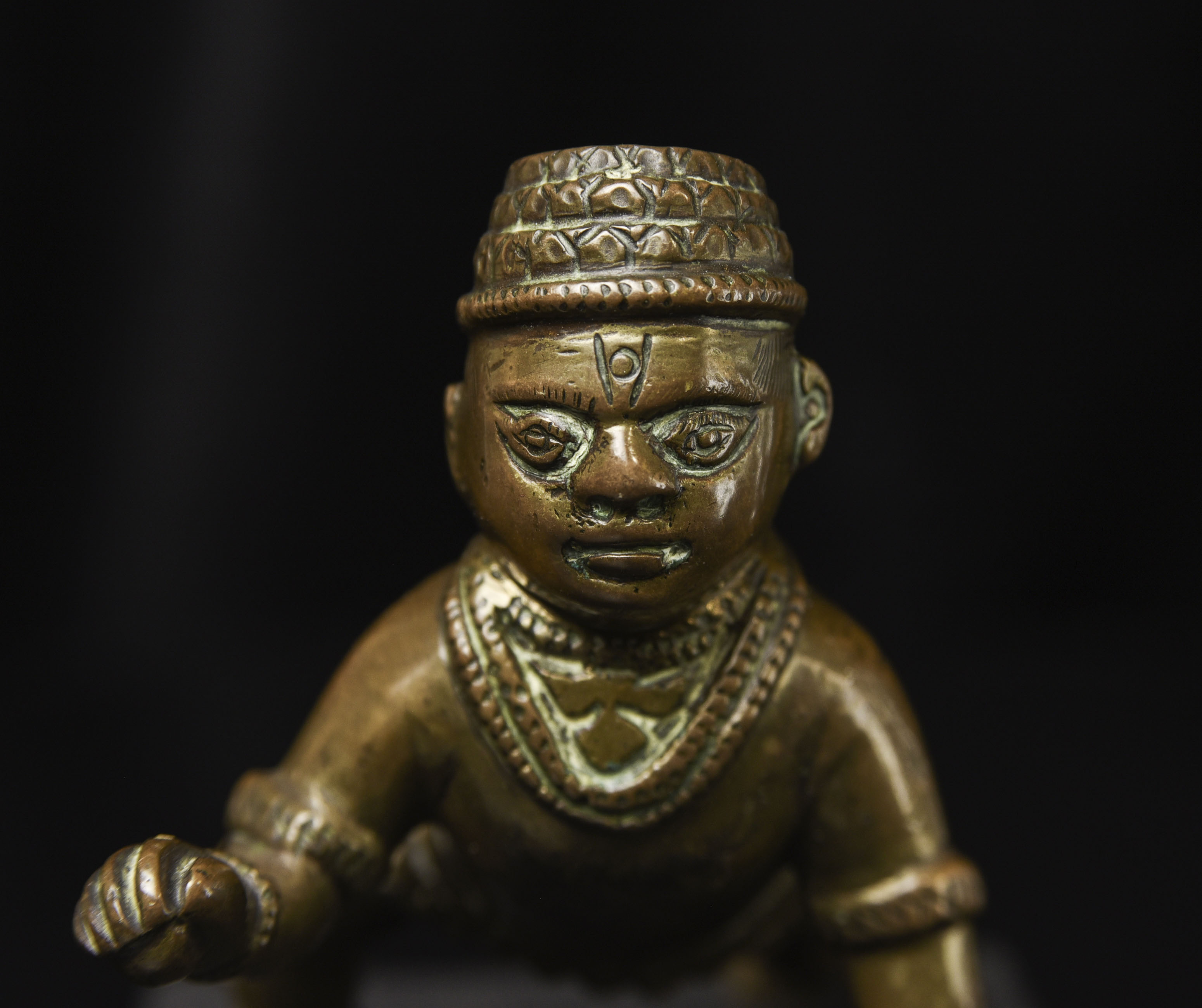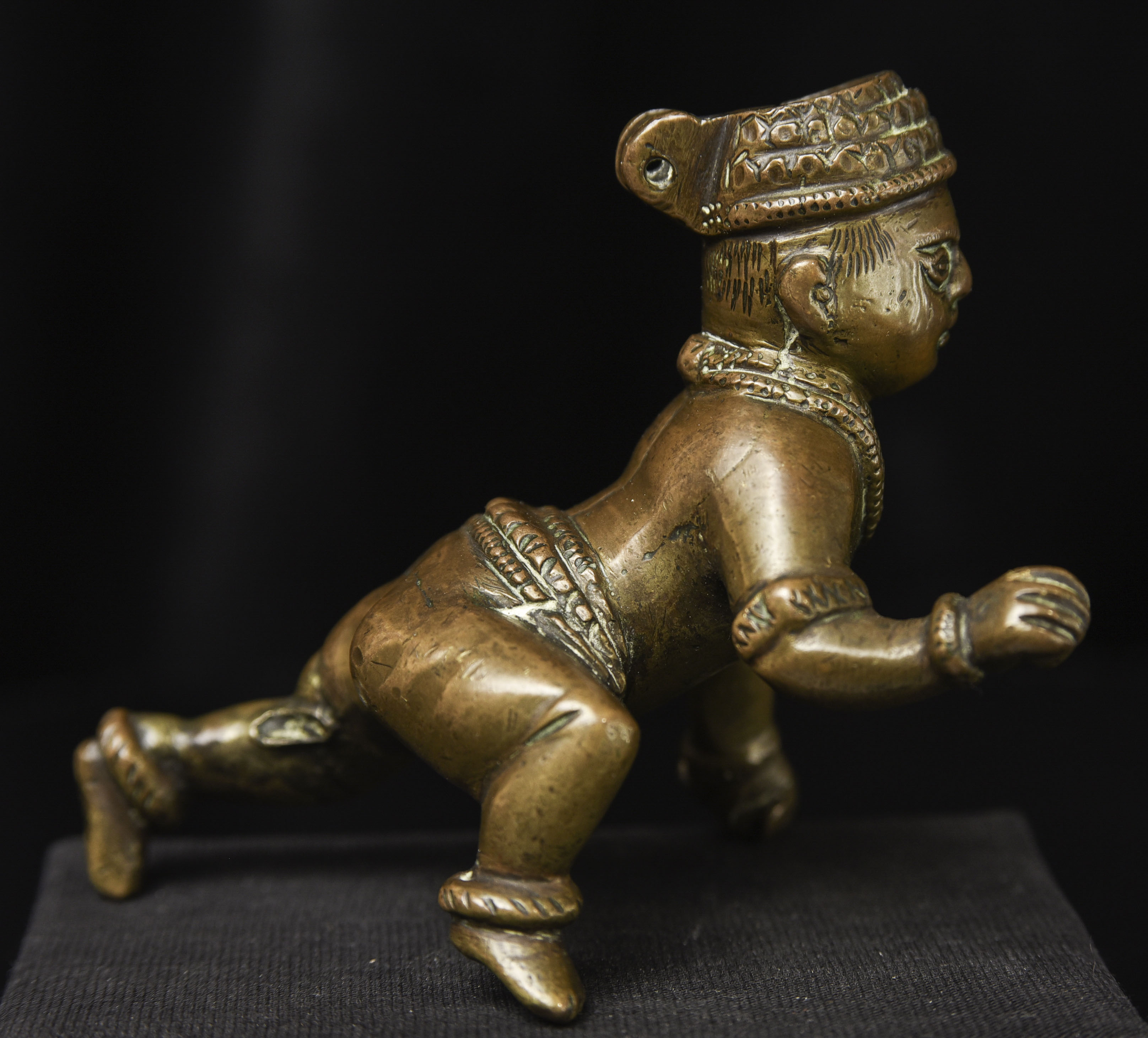 18/19thC Indian Baby Krishna, Top of head originally appears to have been a container (lid missing). Very unusual type. (3"H x 2.75"W x 4"D ) - 315g