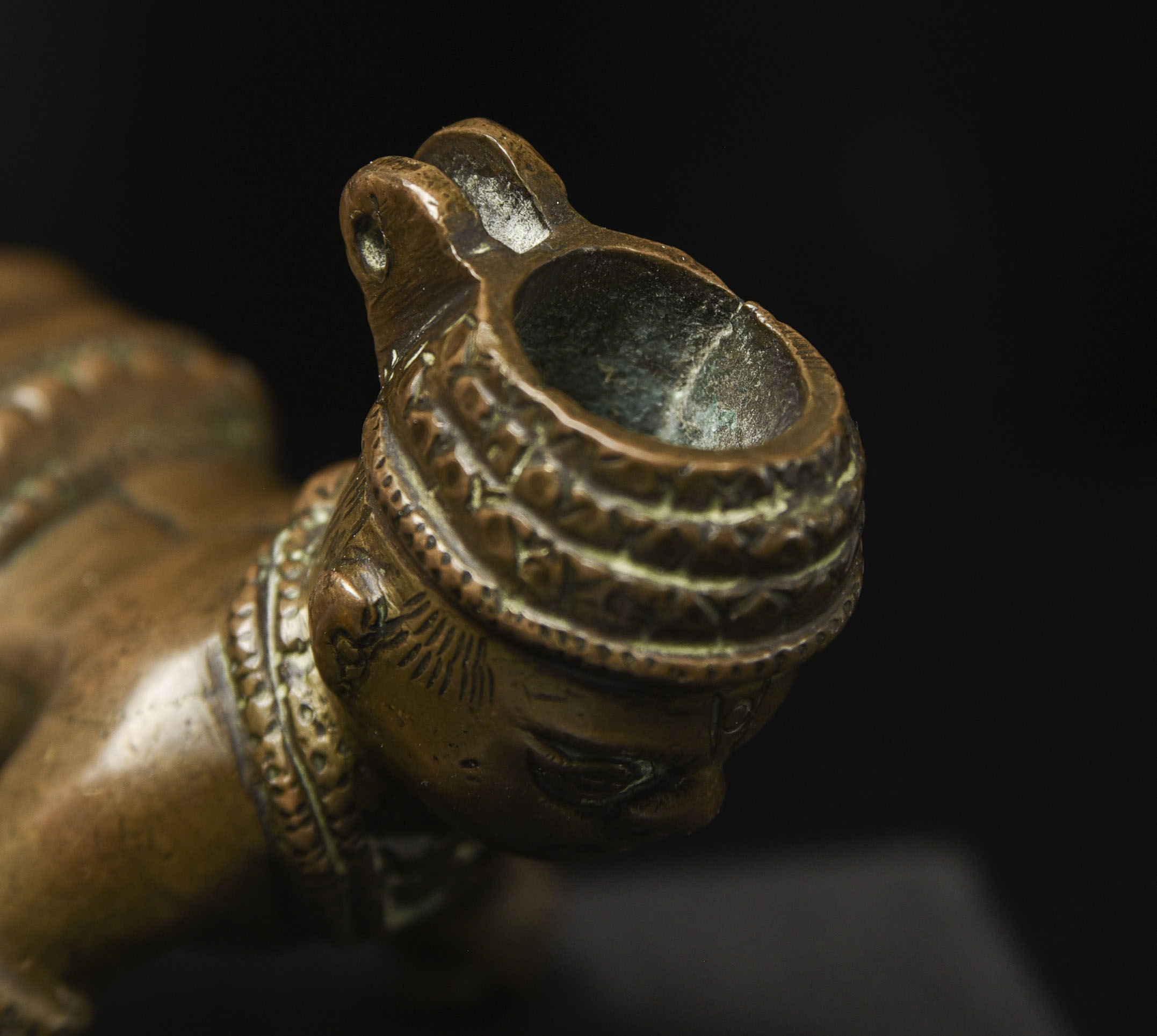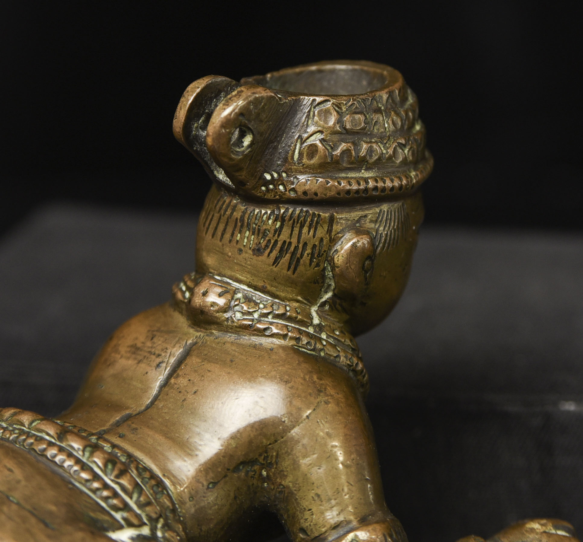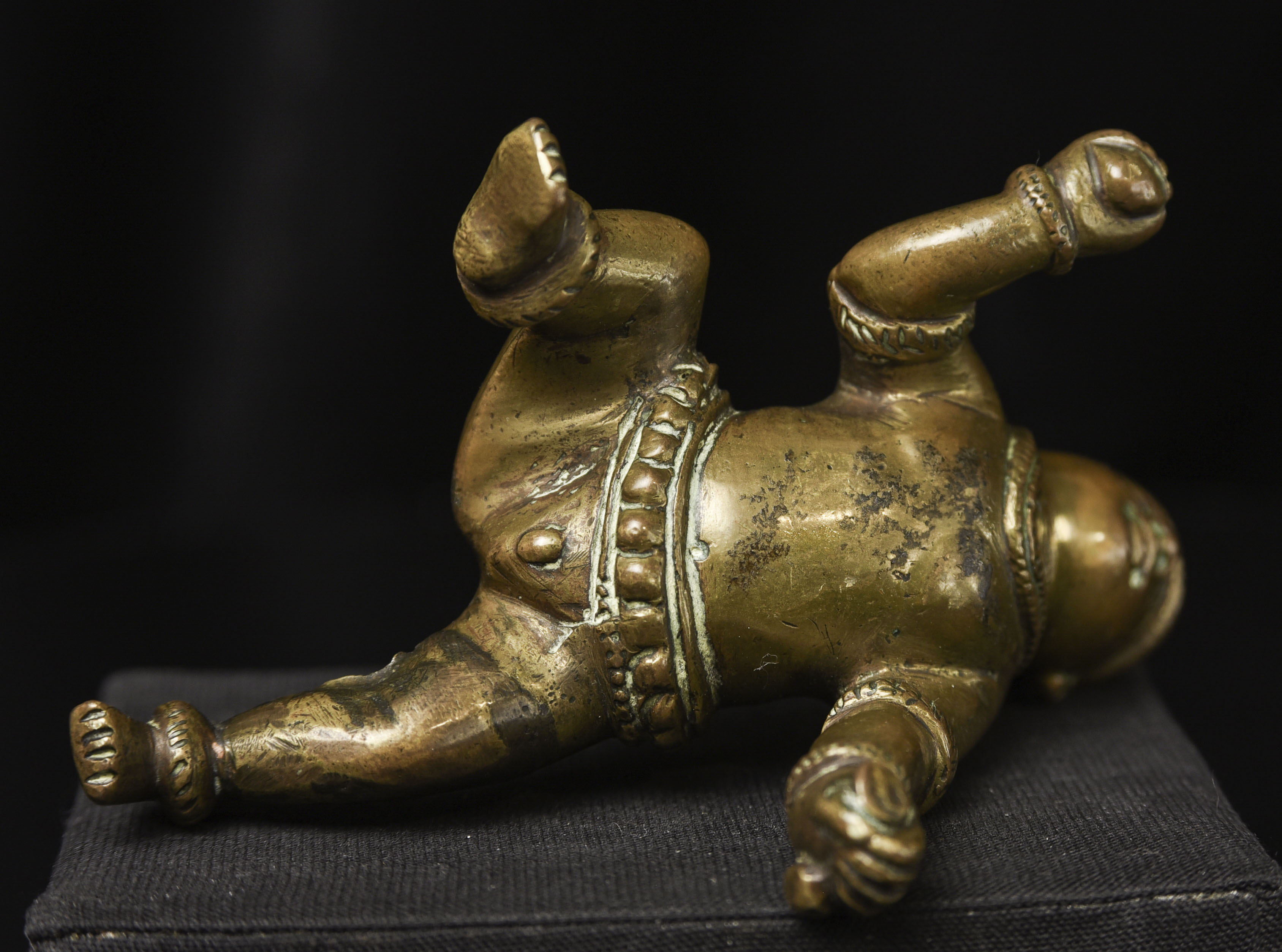 18/19thC Indian Baby Krishna, Top of head originally appears to have been a container (lid missing). Very unusual type. (3"H x 2.75"W x 4"D ) - 315g
