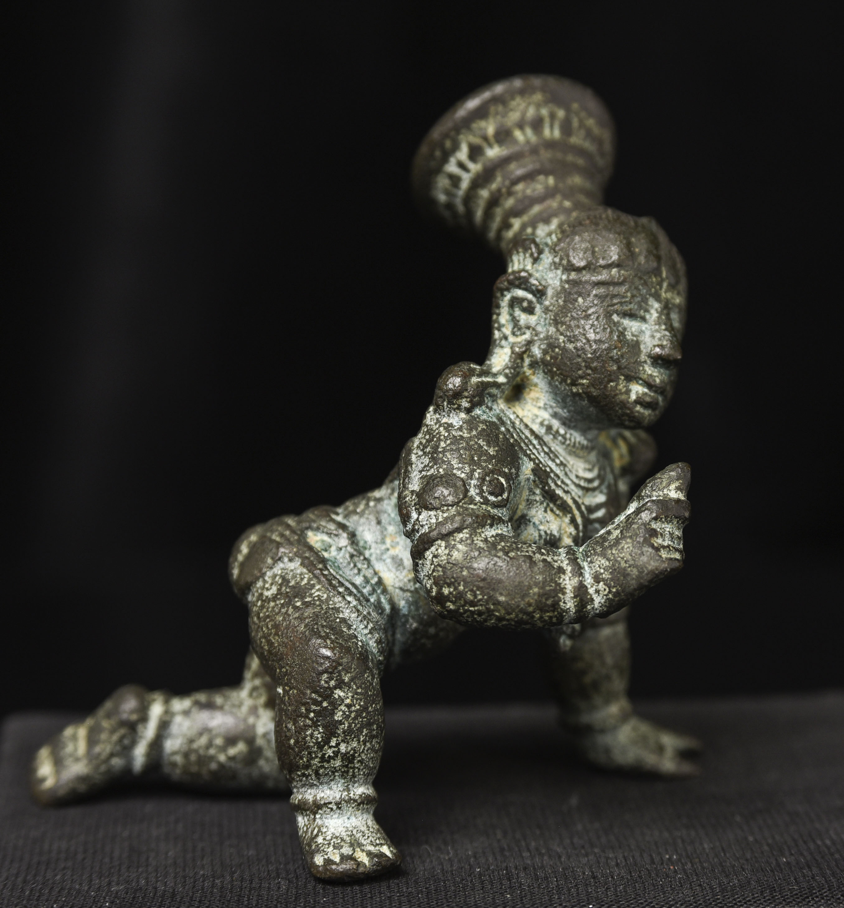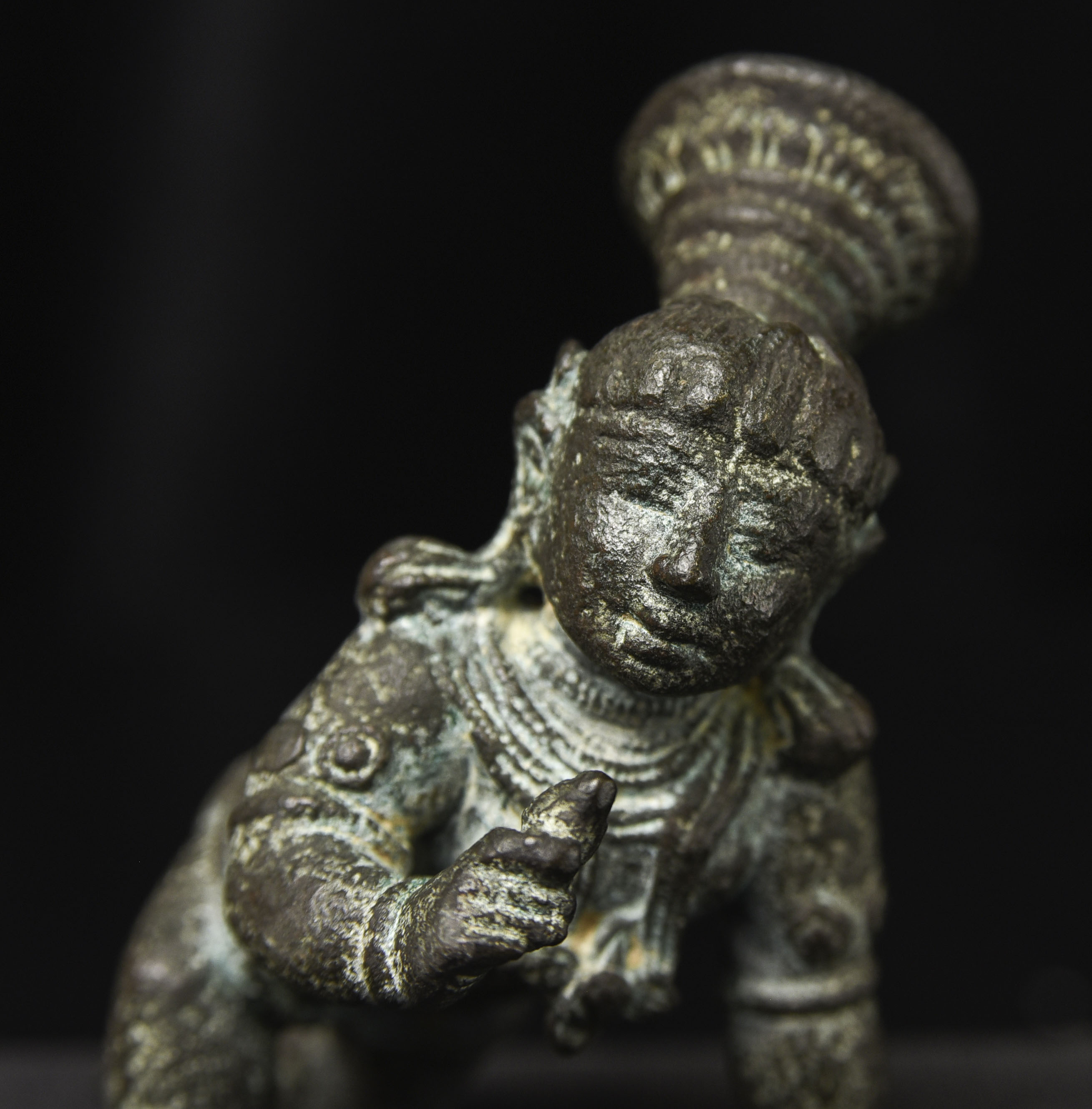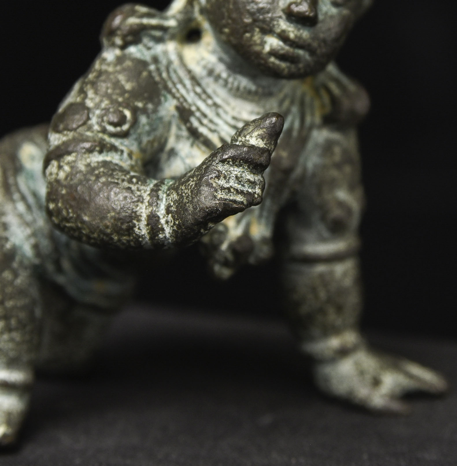 Nice early bronze baby Krishna with his butterball. Classic example of his type. (2.875"H x 2"W x 3"D ) - 295g