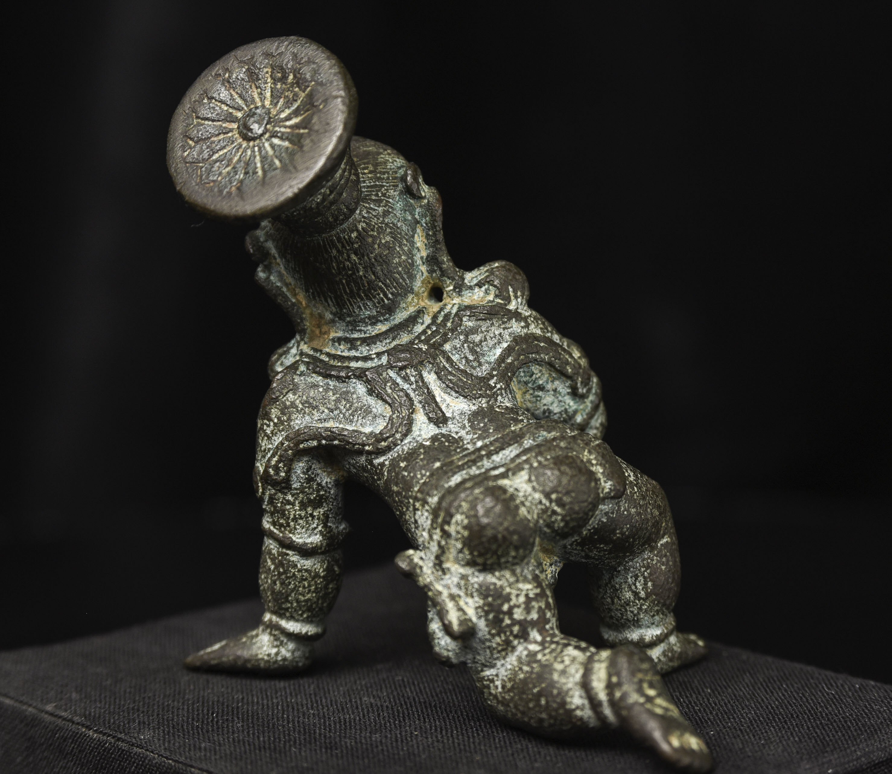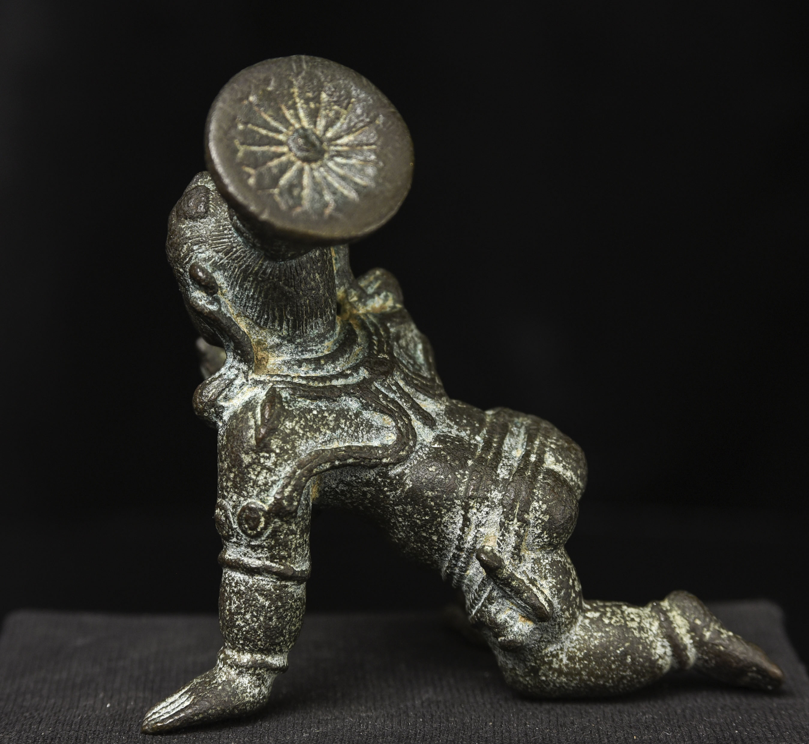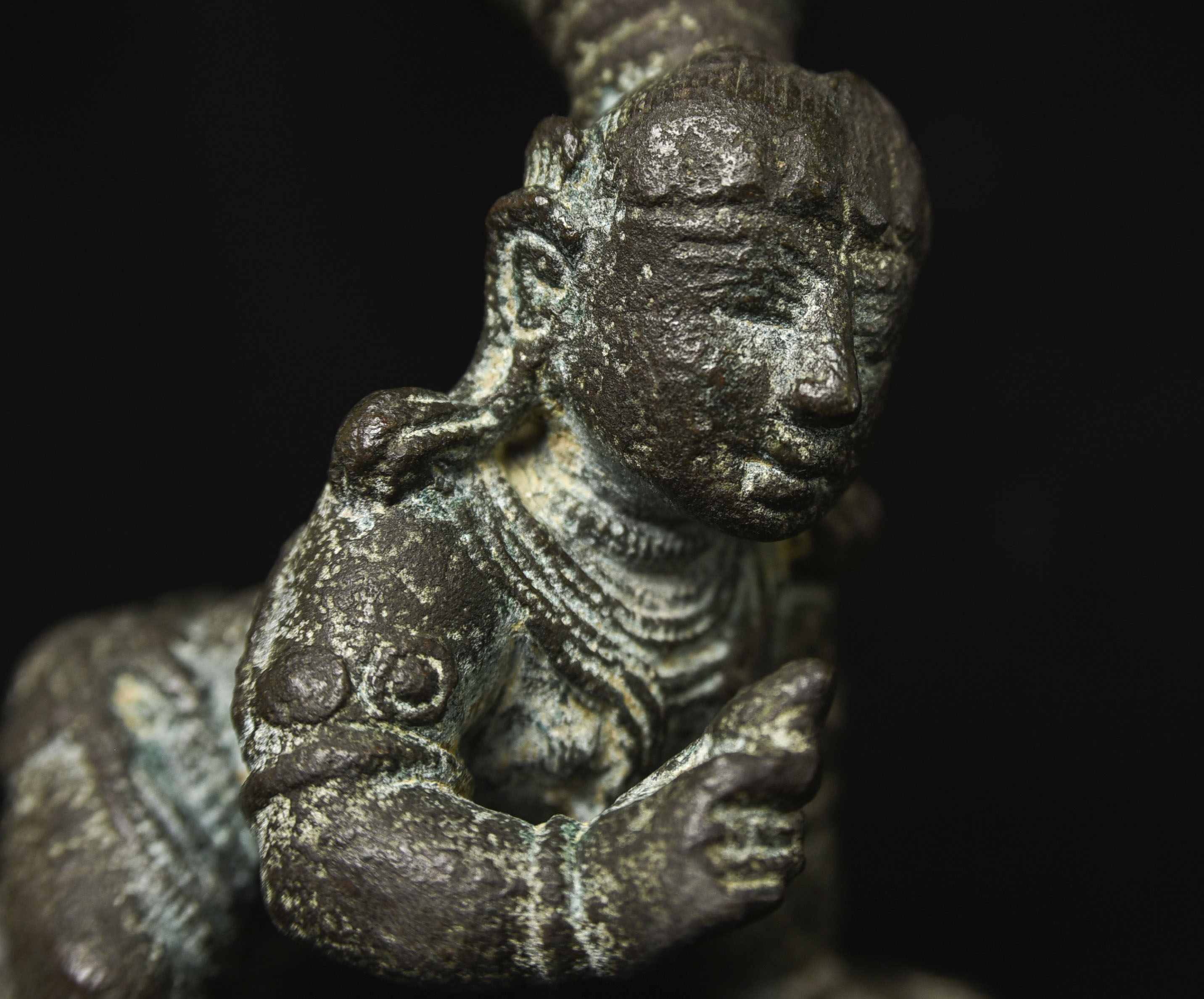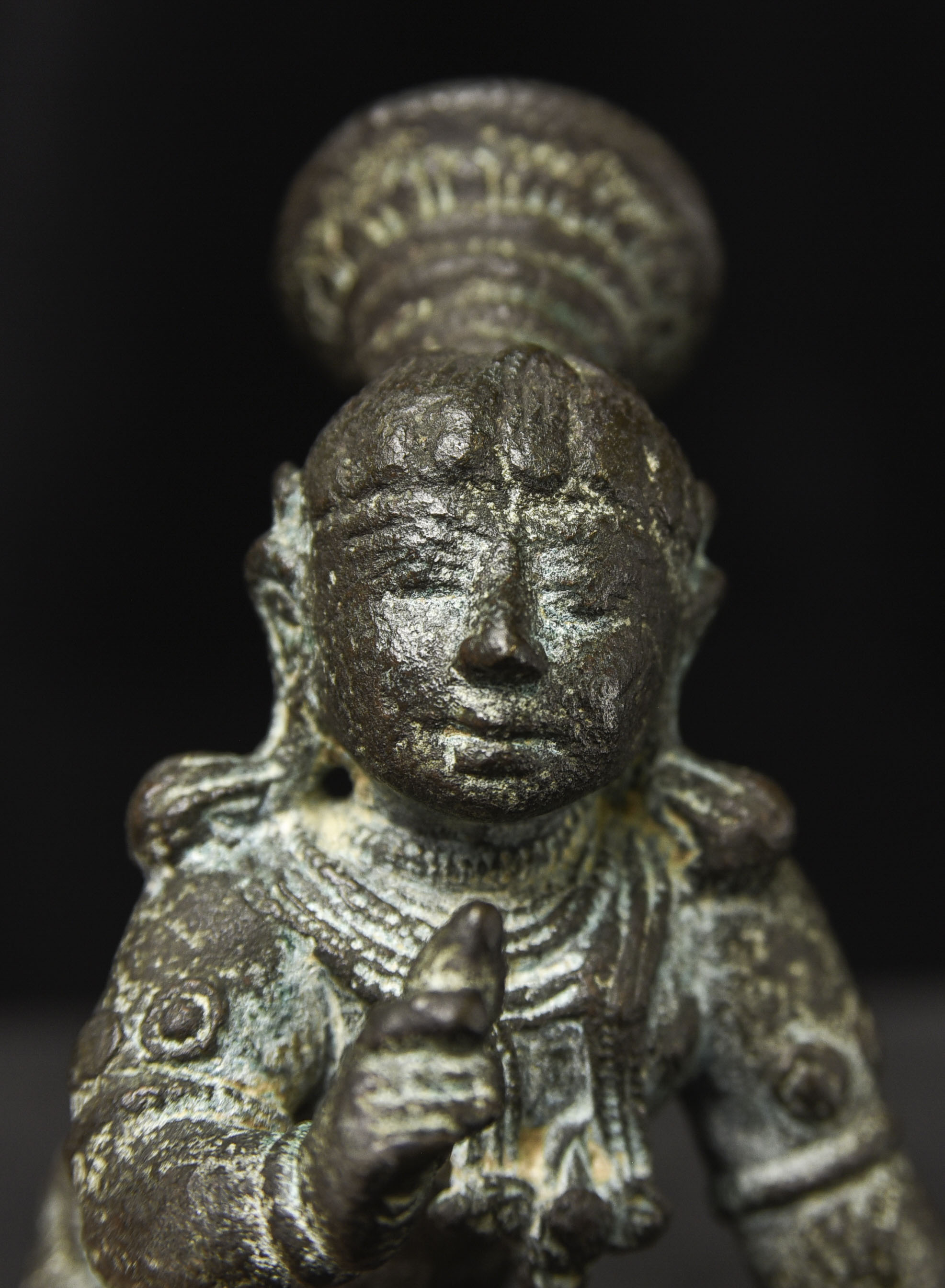 Nice early bronze baby Krishna with his butterball. Classic example of his type. (2.875"H x 2"W x 3"D ) - 295g