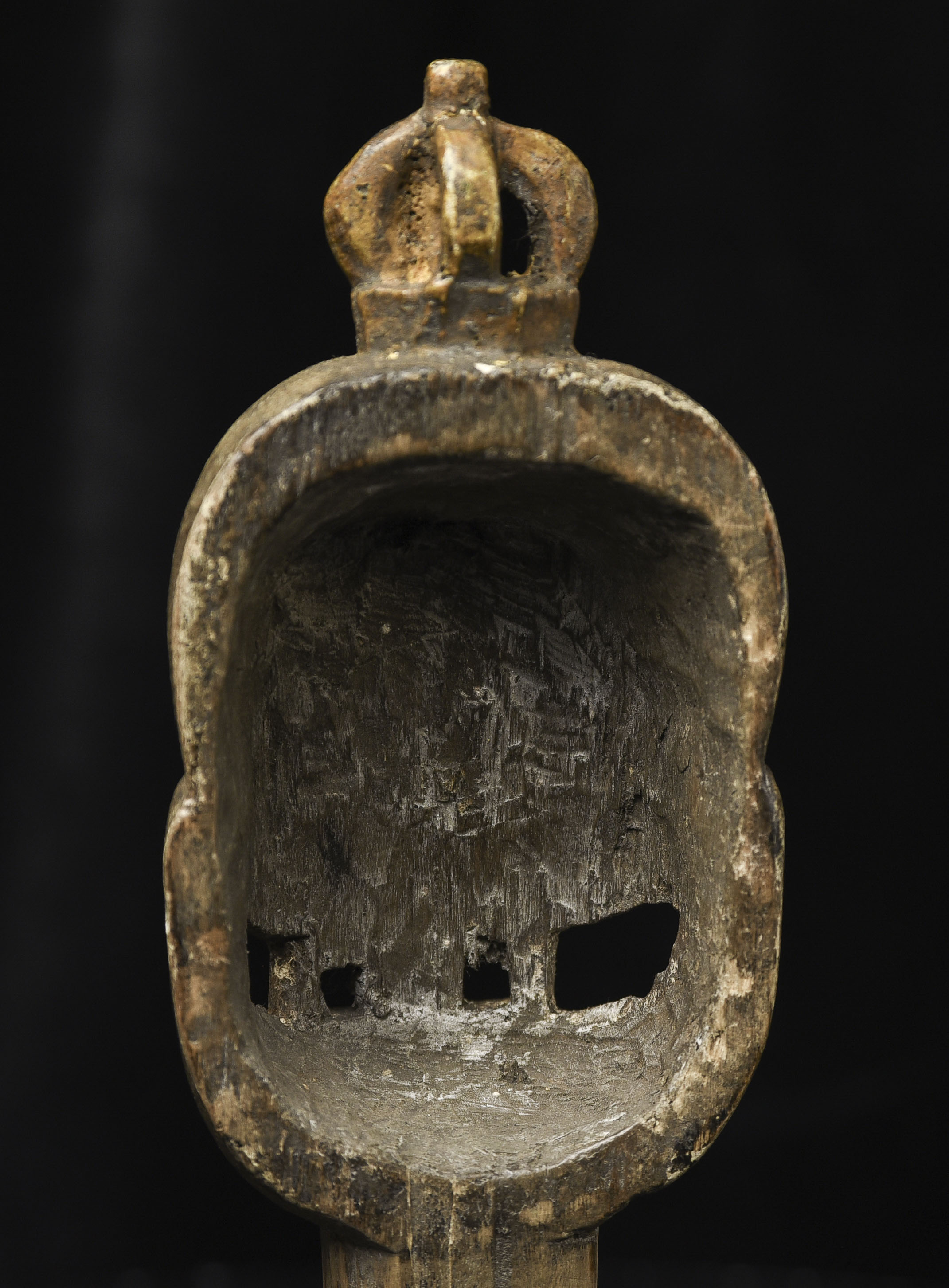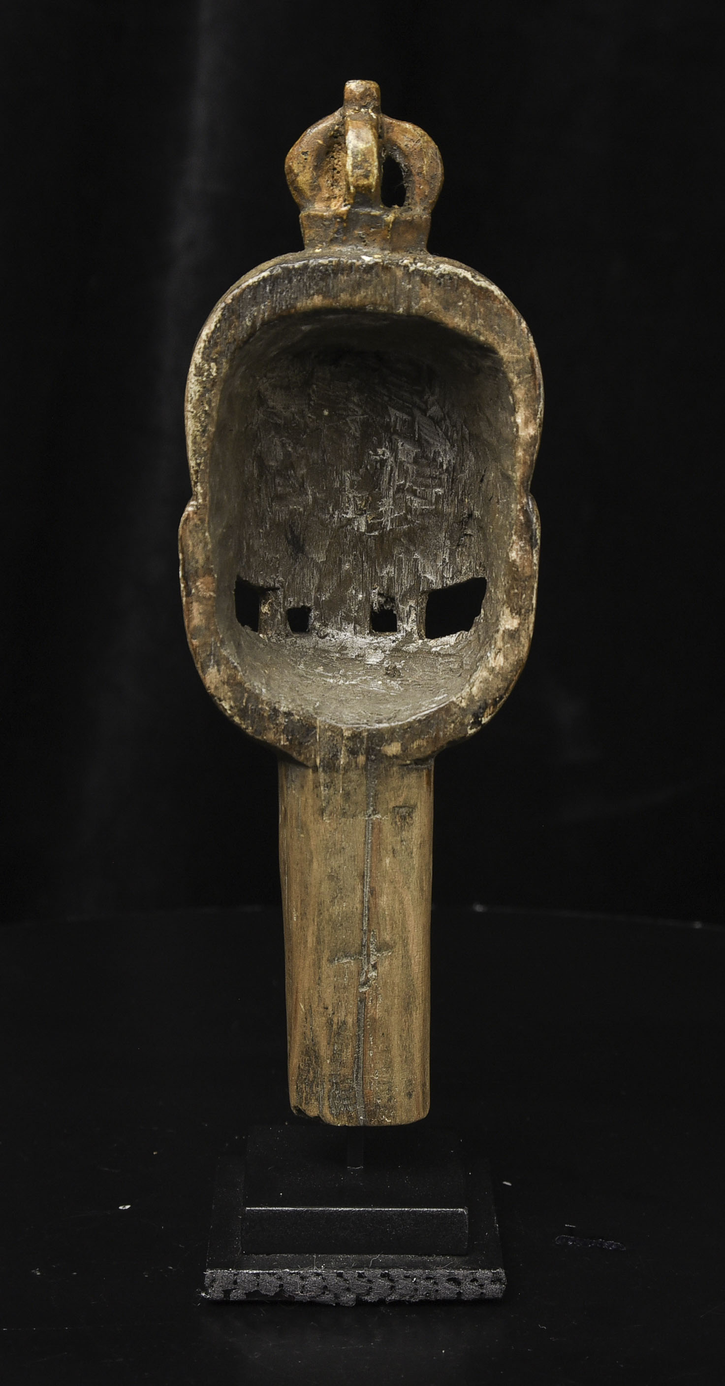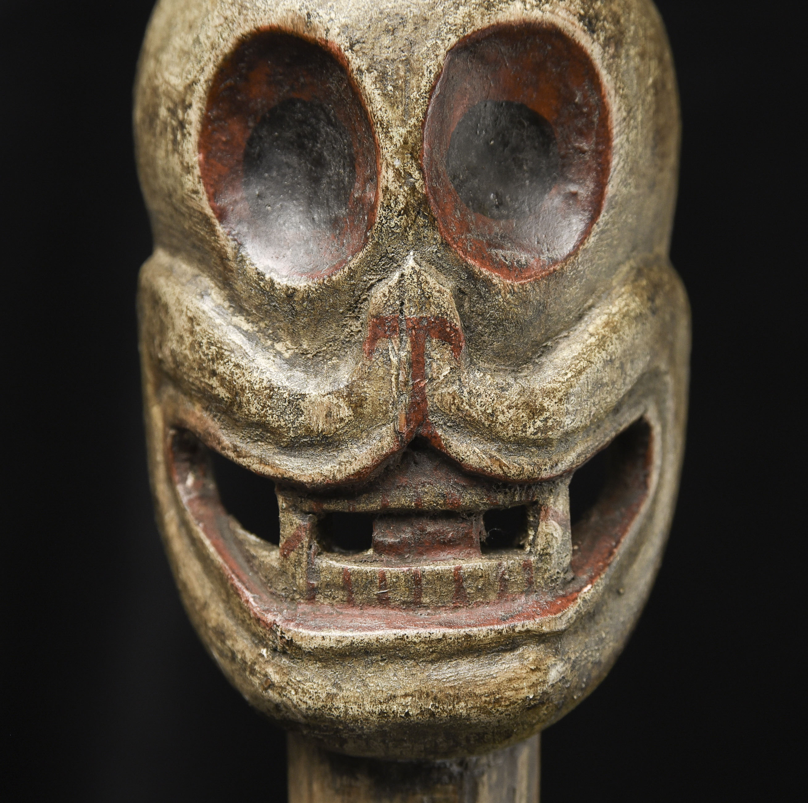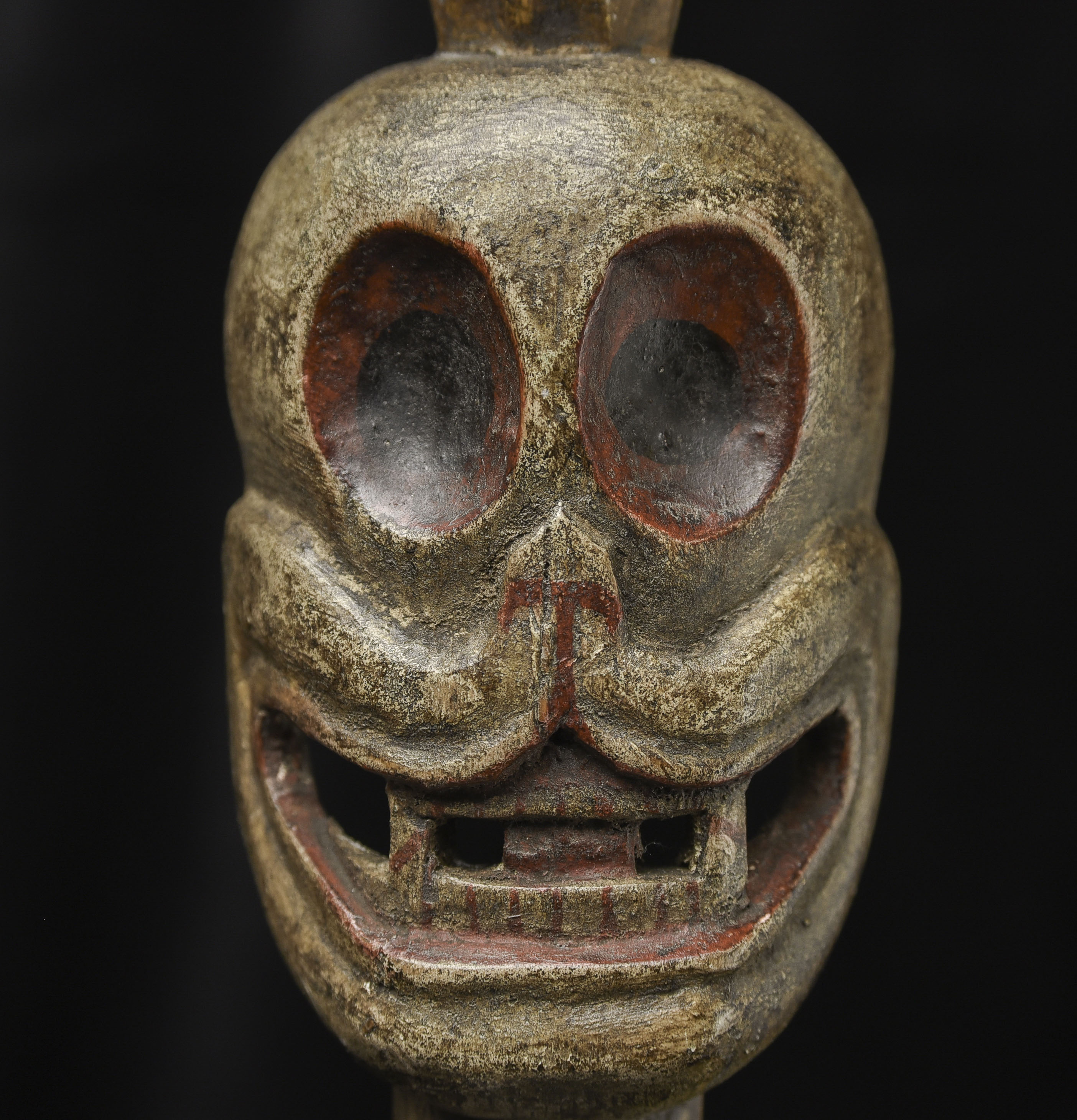 18/19thC Tibetan or Mongolian Citi Pati head on a short "neck" pole. Very fine example of its type. Powerfully animated, Hard to find like this. ( 7.75"H x 2.5"W x 1.5"D ) - 365g W/ recently made custom base